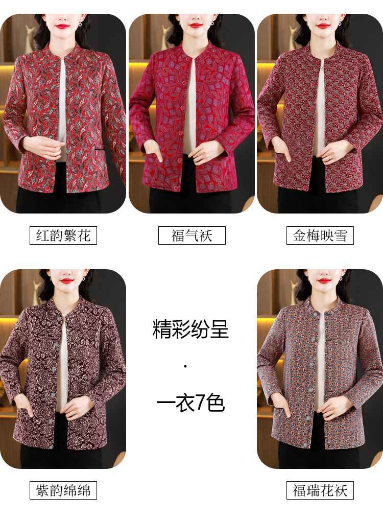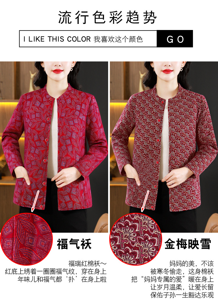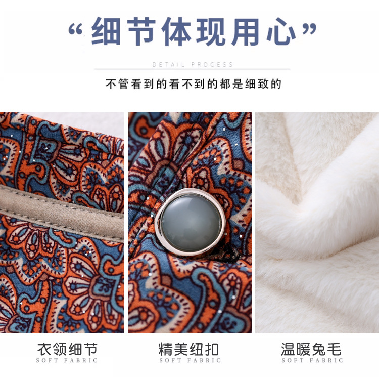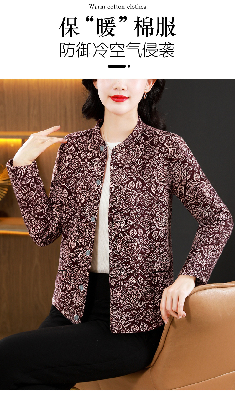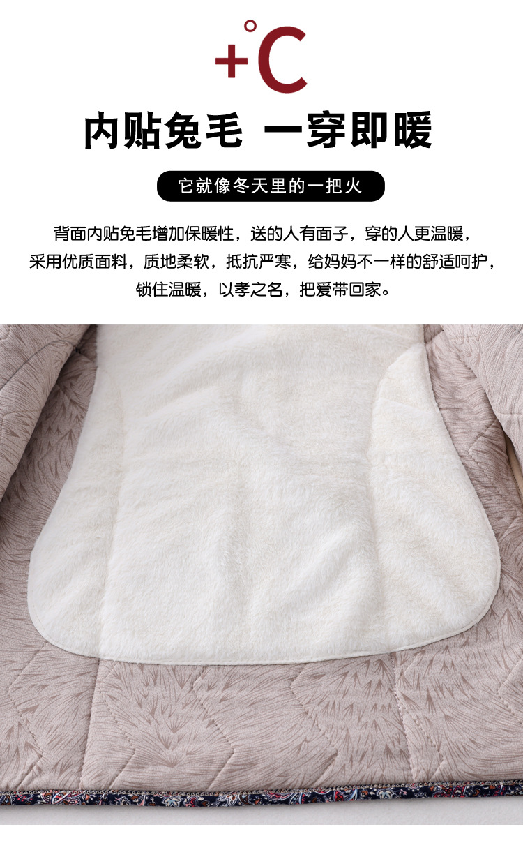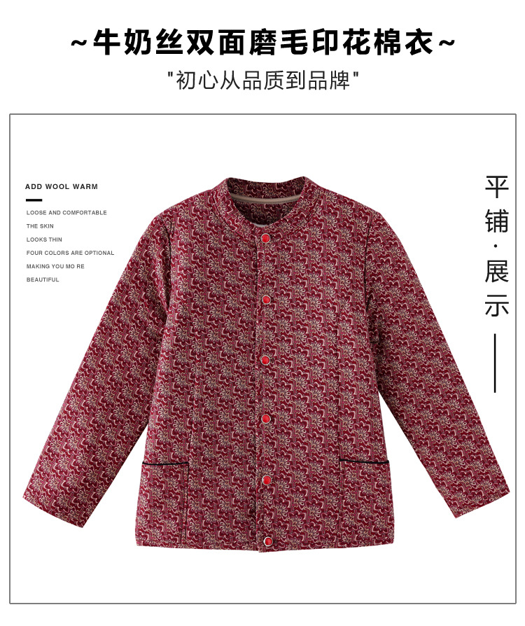 KQL356H6819 2025秋冬牛奶丝双面磨毛印花中老年打底棉衣保暖妈妈装居家服