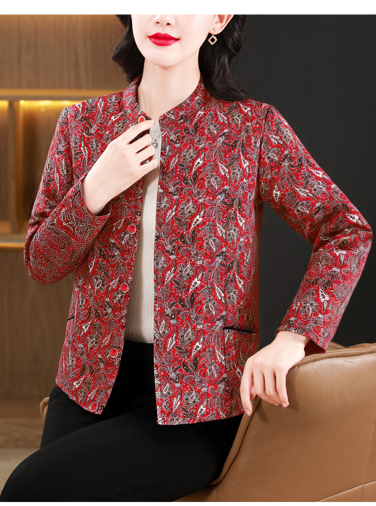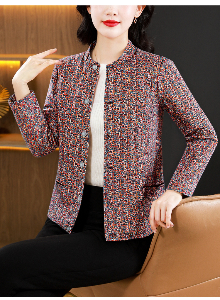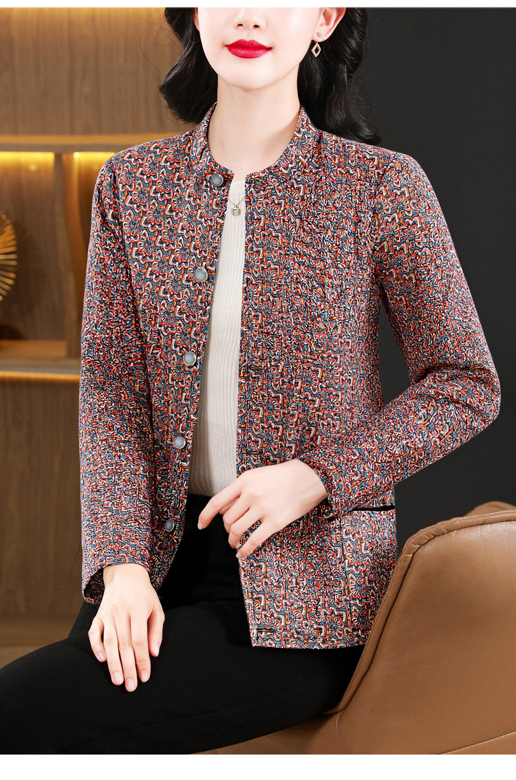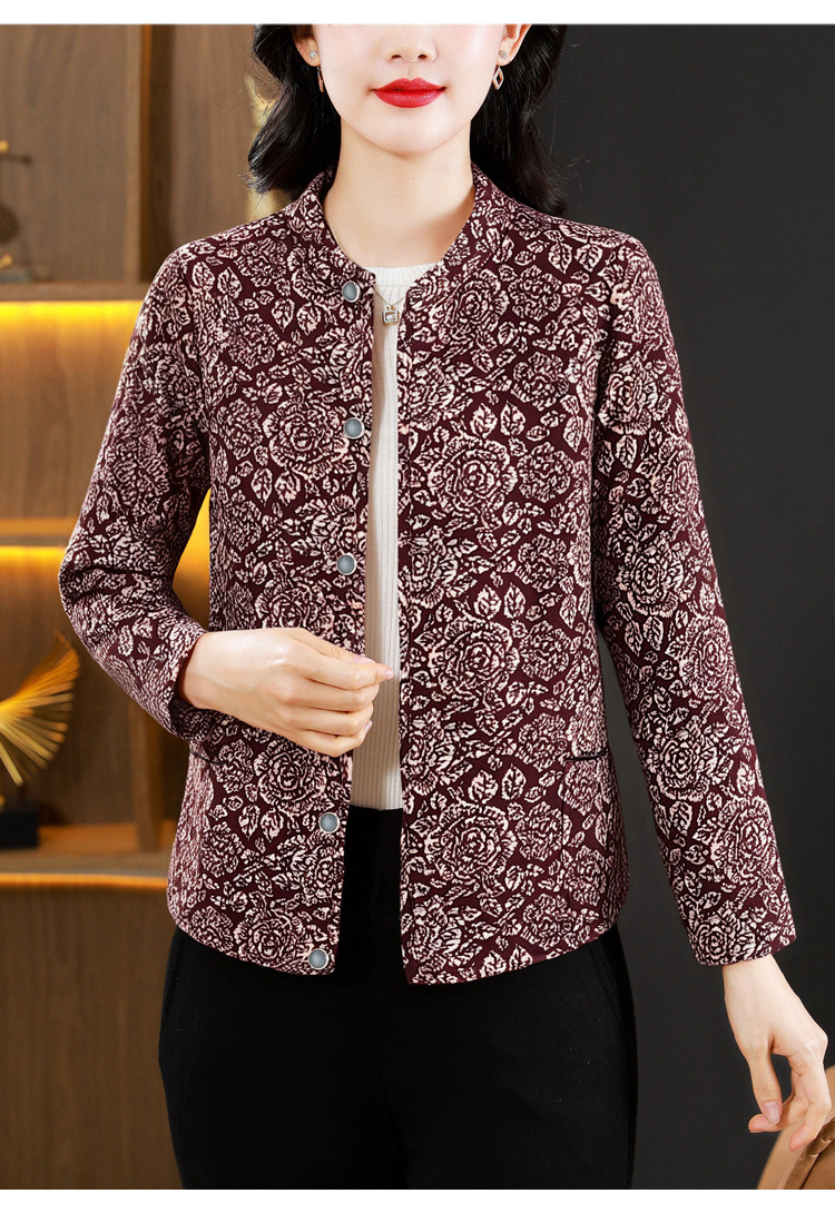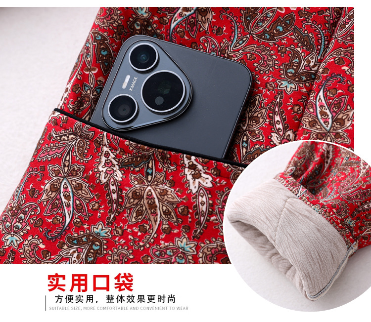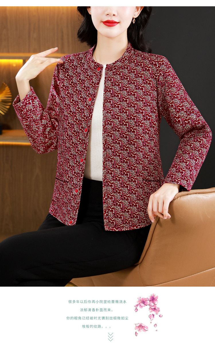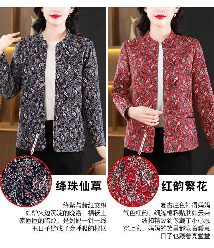 KQL356H6819 2025秋冬牛奶丝双面磨毛印花中老年打底棉衣保暖妈妈装居家服