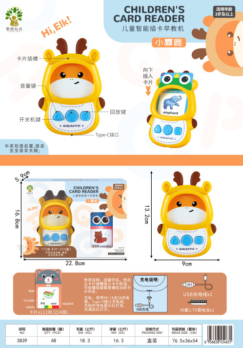 【中英启蒙!智能读卡机】中英双语儿童读卡插卡早教机,学习机宝宝启蒙,益智类电子智能玩具-QQ