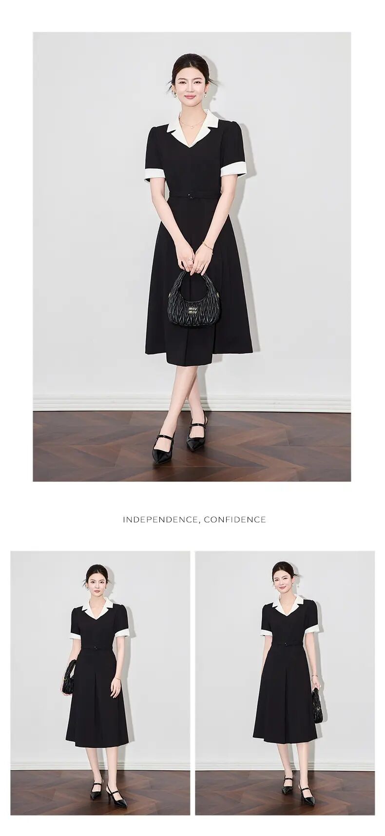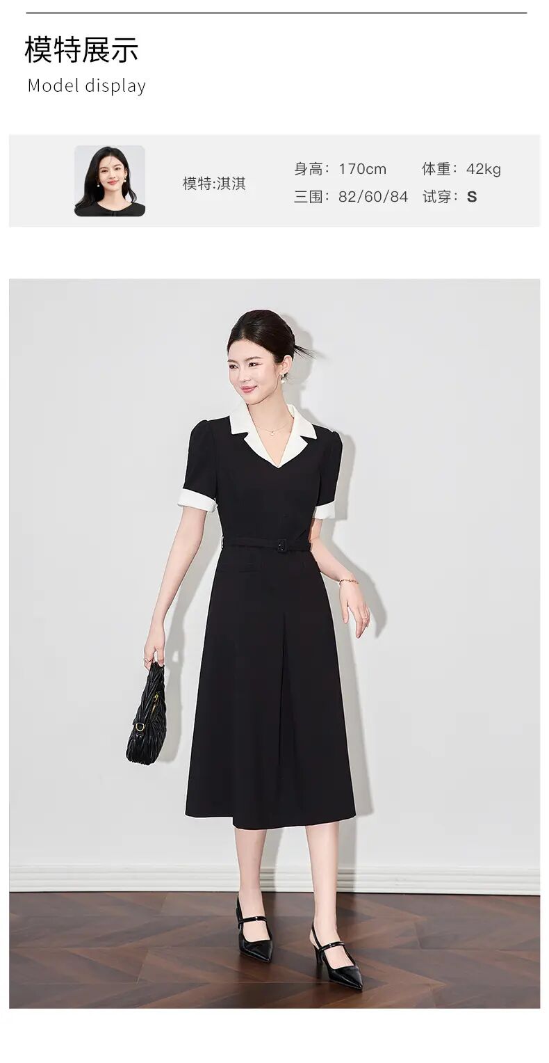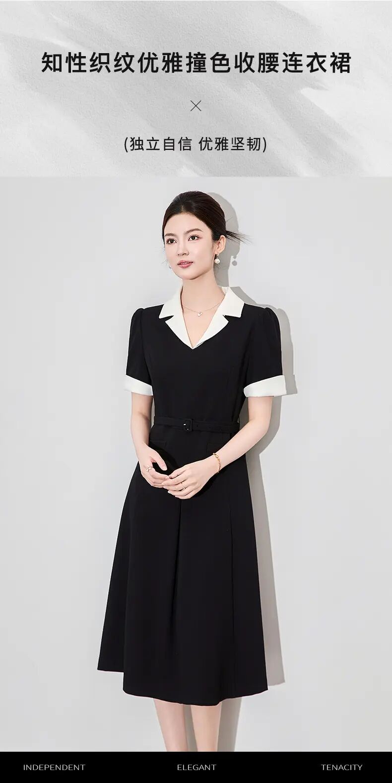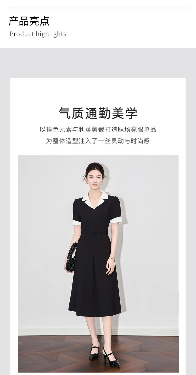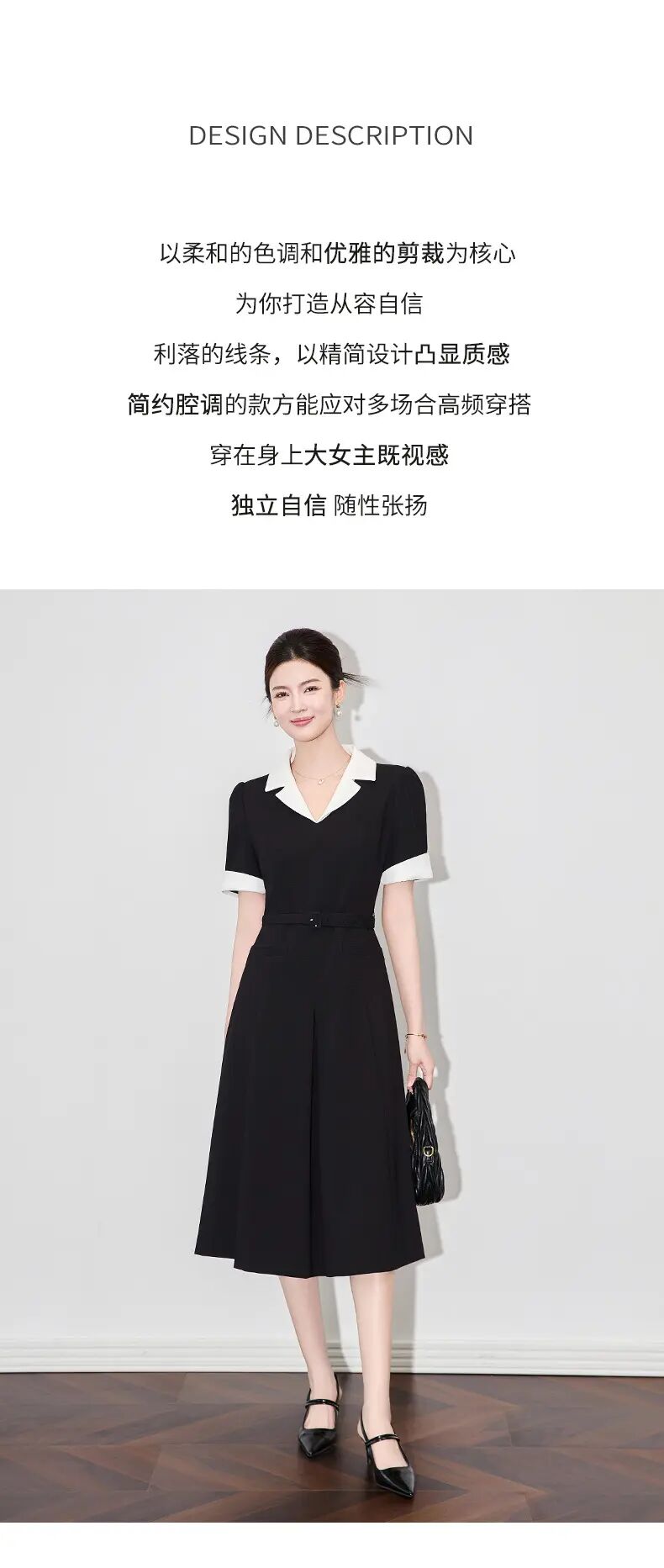 【高货wl】全新升级【铂金会员349/天猫469/差价120】(00559) 洛诗琳25春夏高级感职业裙气质撞色收腰短袖女新款连衣裙