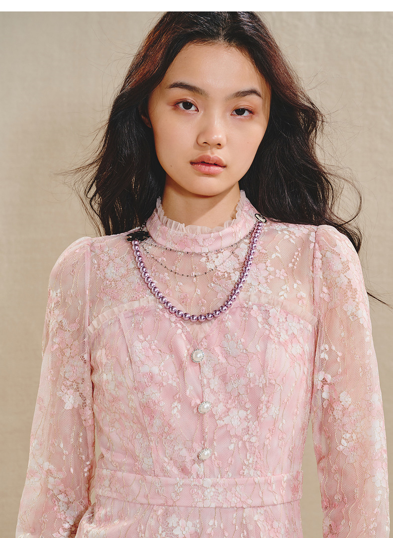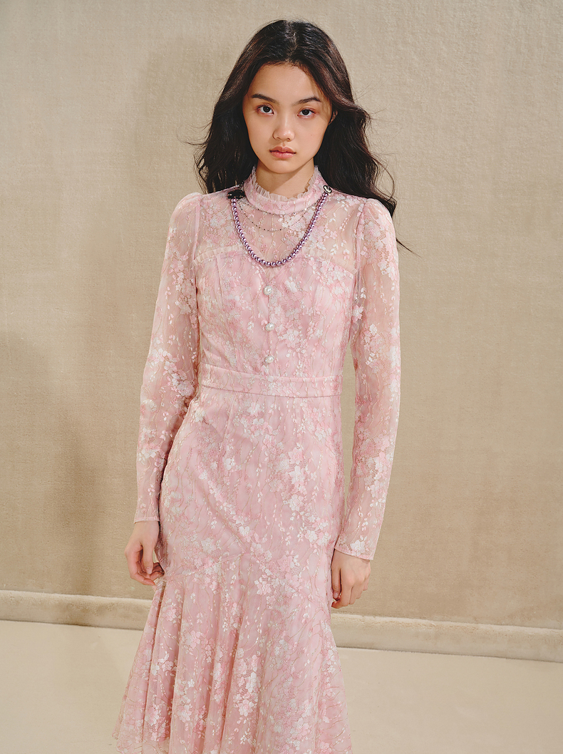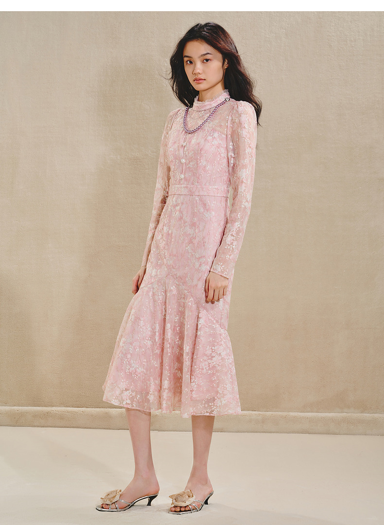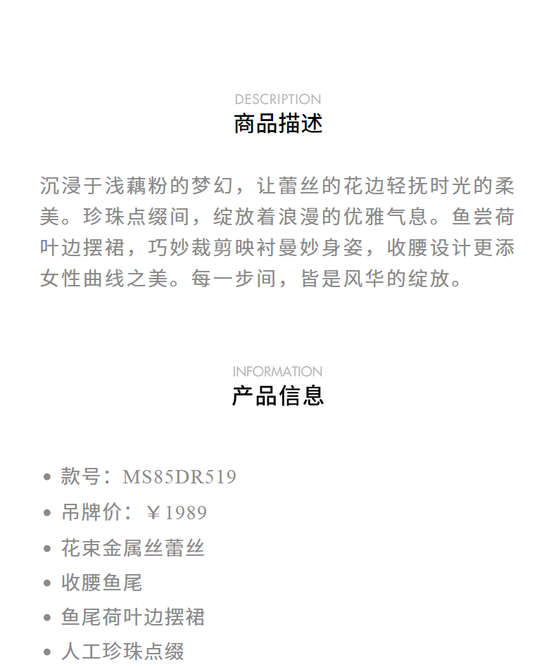 MAXRIENY*优雅浪漫感连衣裙2024秋冬新款鱼尾荷叶边蕾丝长裙(货号:MS85DR519)