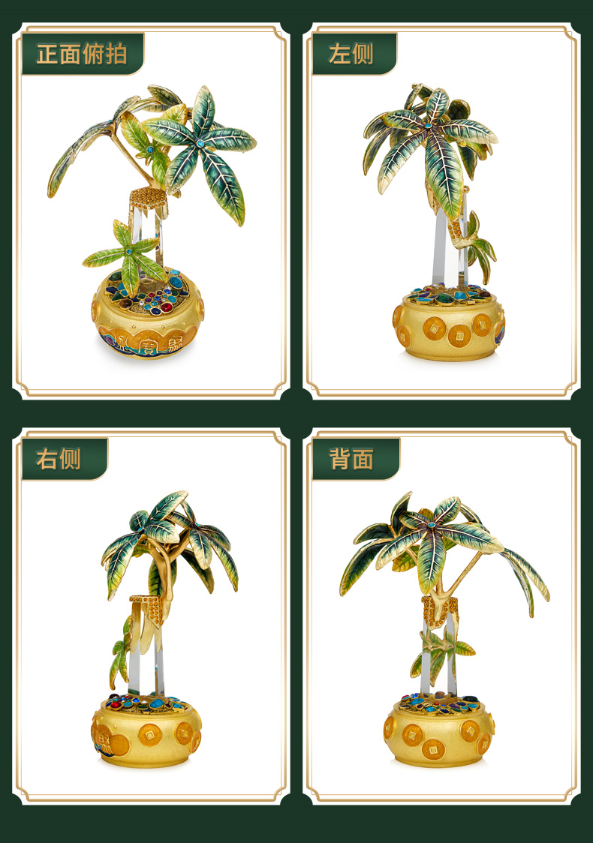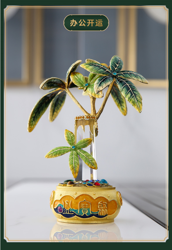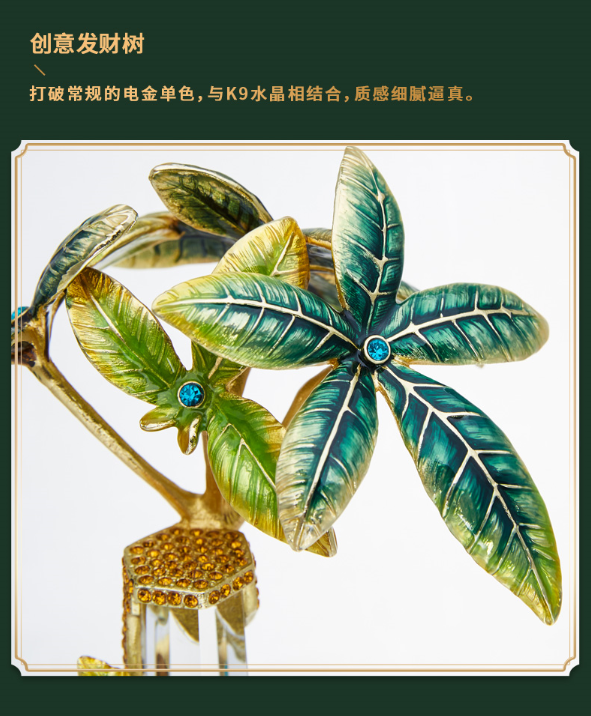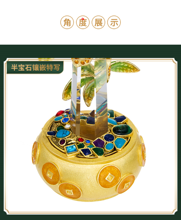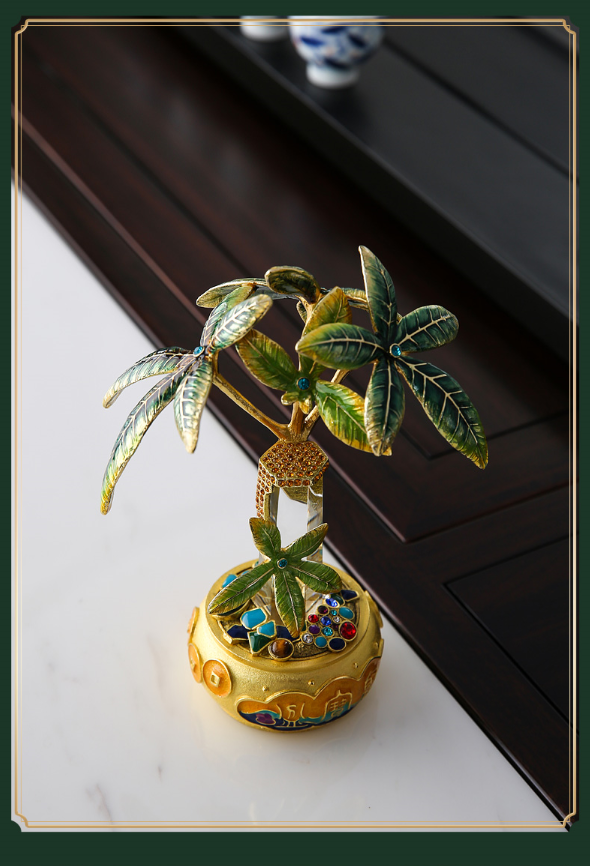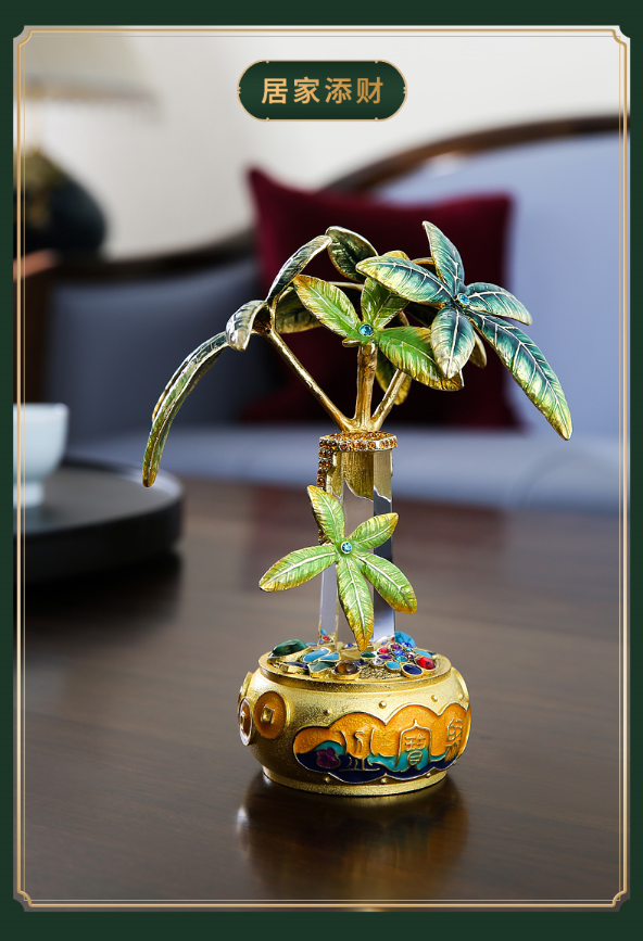 【彼达思】罗比罗丹珐琅彩工艺聚宝盆发财树摆件客厅办公室招财摆件开业礼品