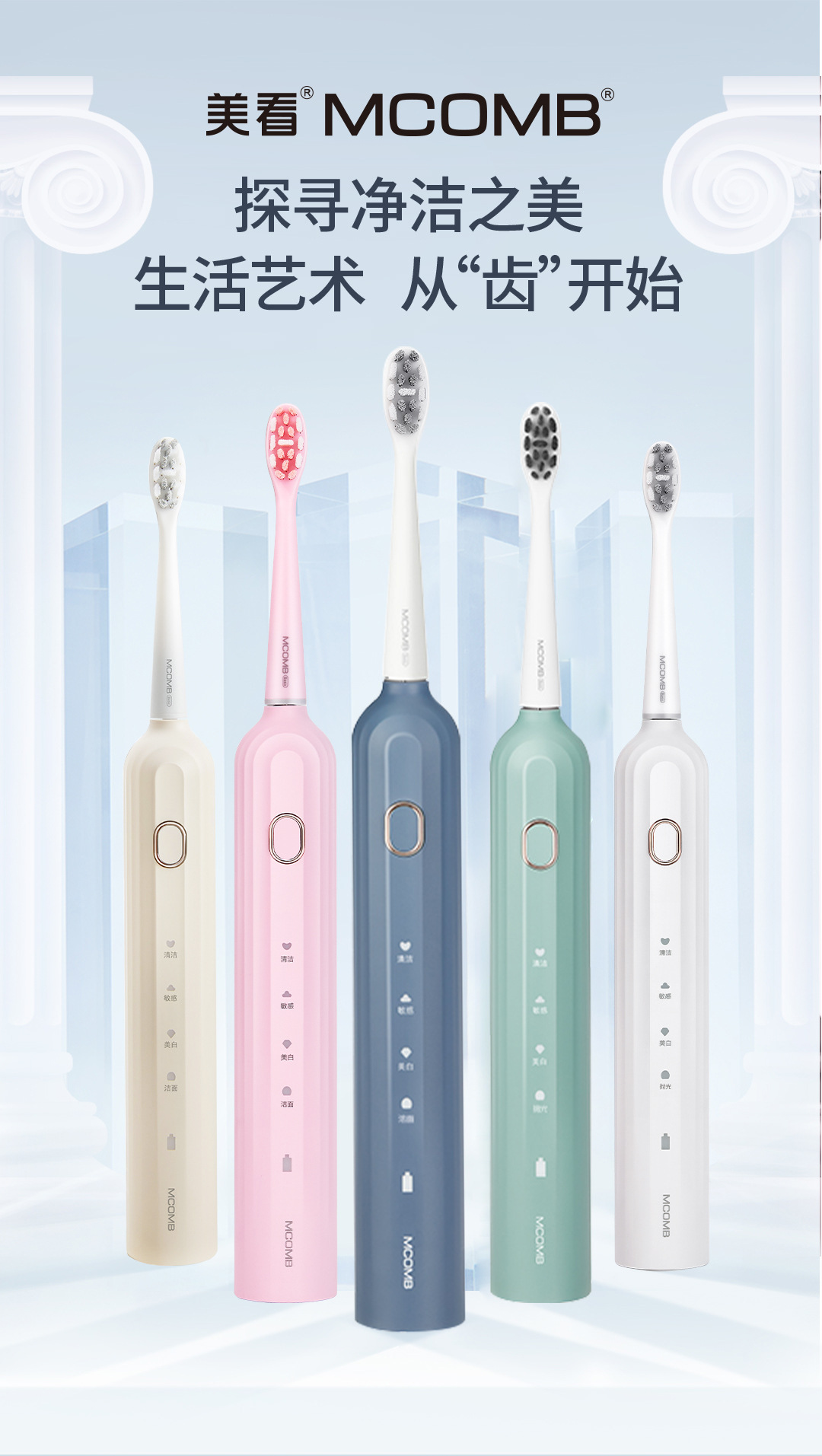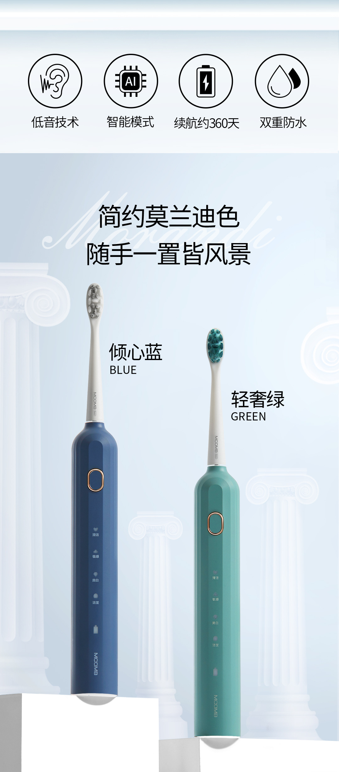 【美看Mcomb电动牙刷】声波防水情侣牙刷 科技充电款山姆平替七夕情人节礼品