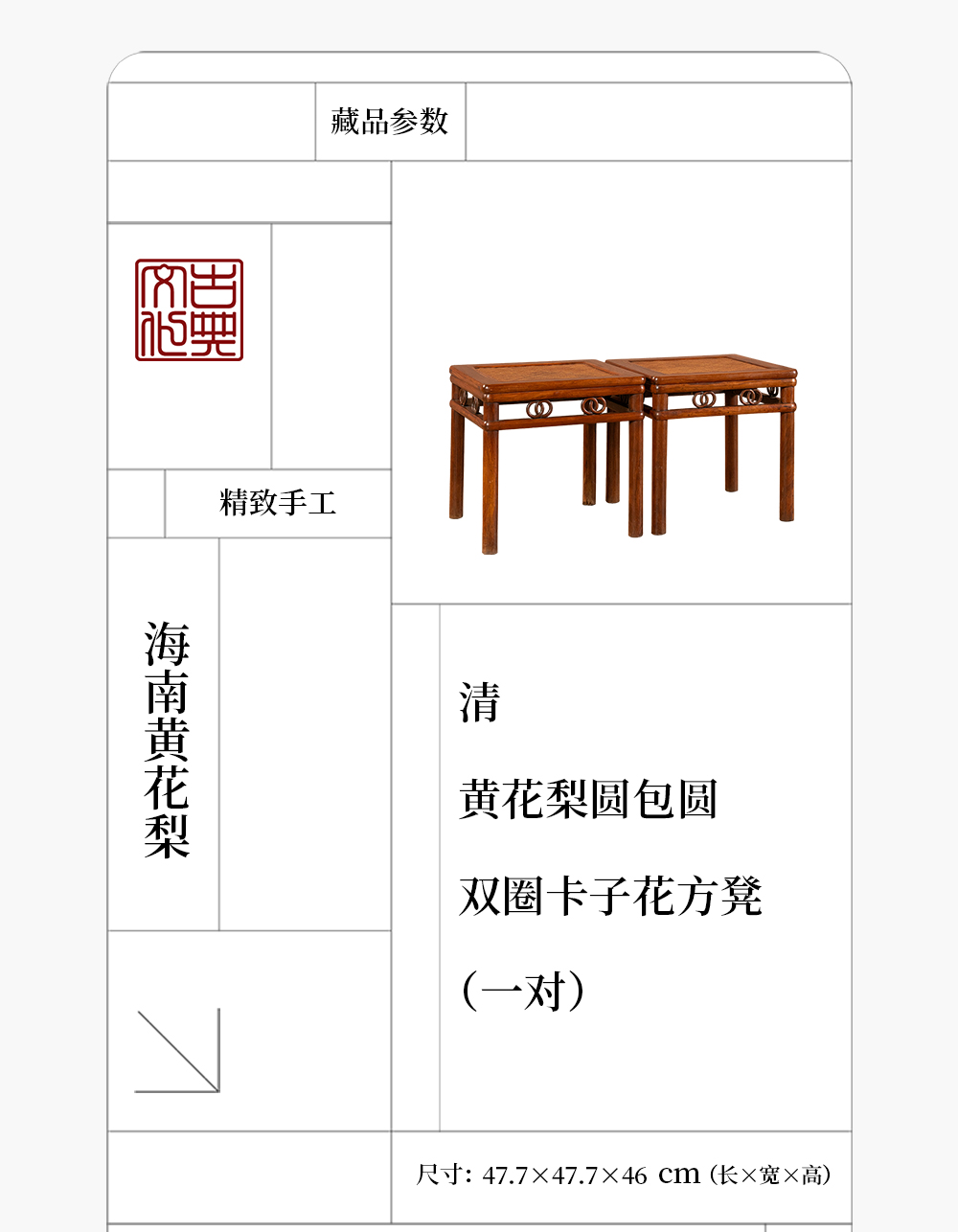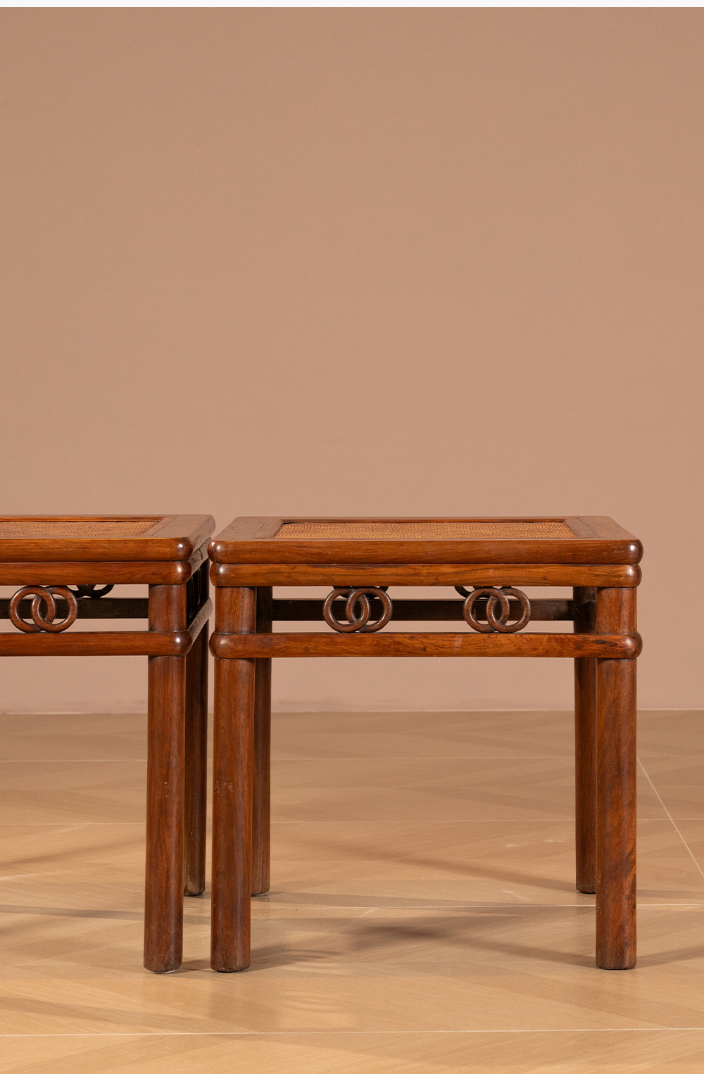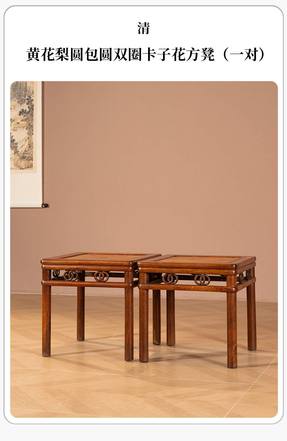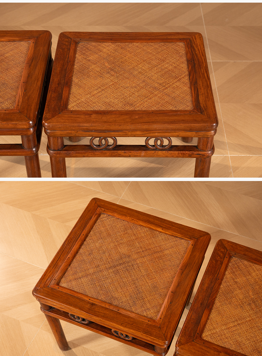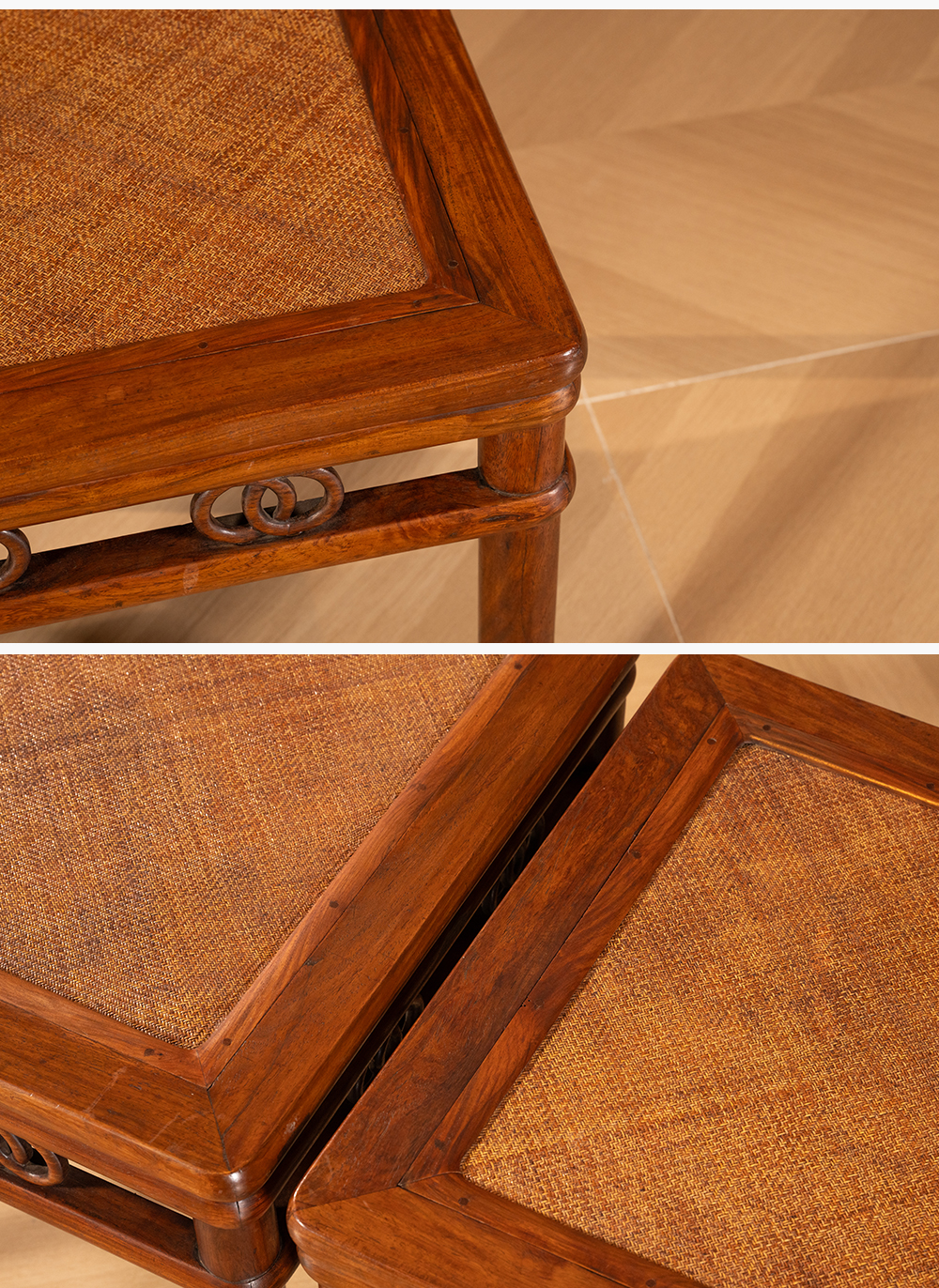 清 黄花梨圆包圆双圈卡子花方凳(一对)