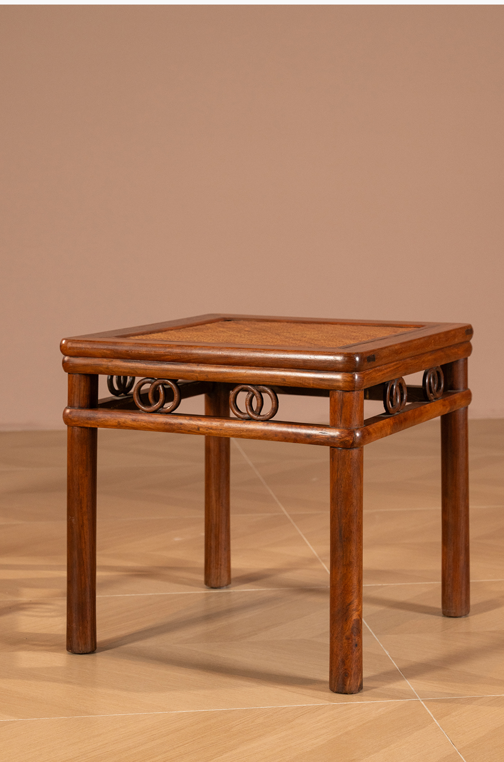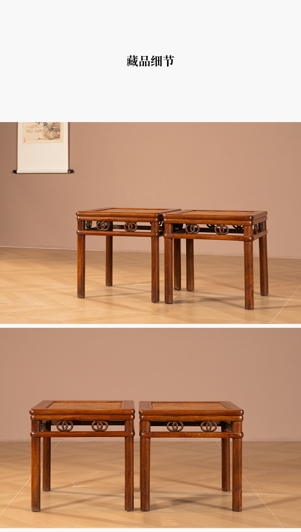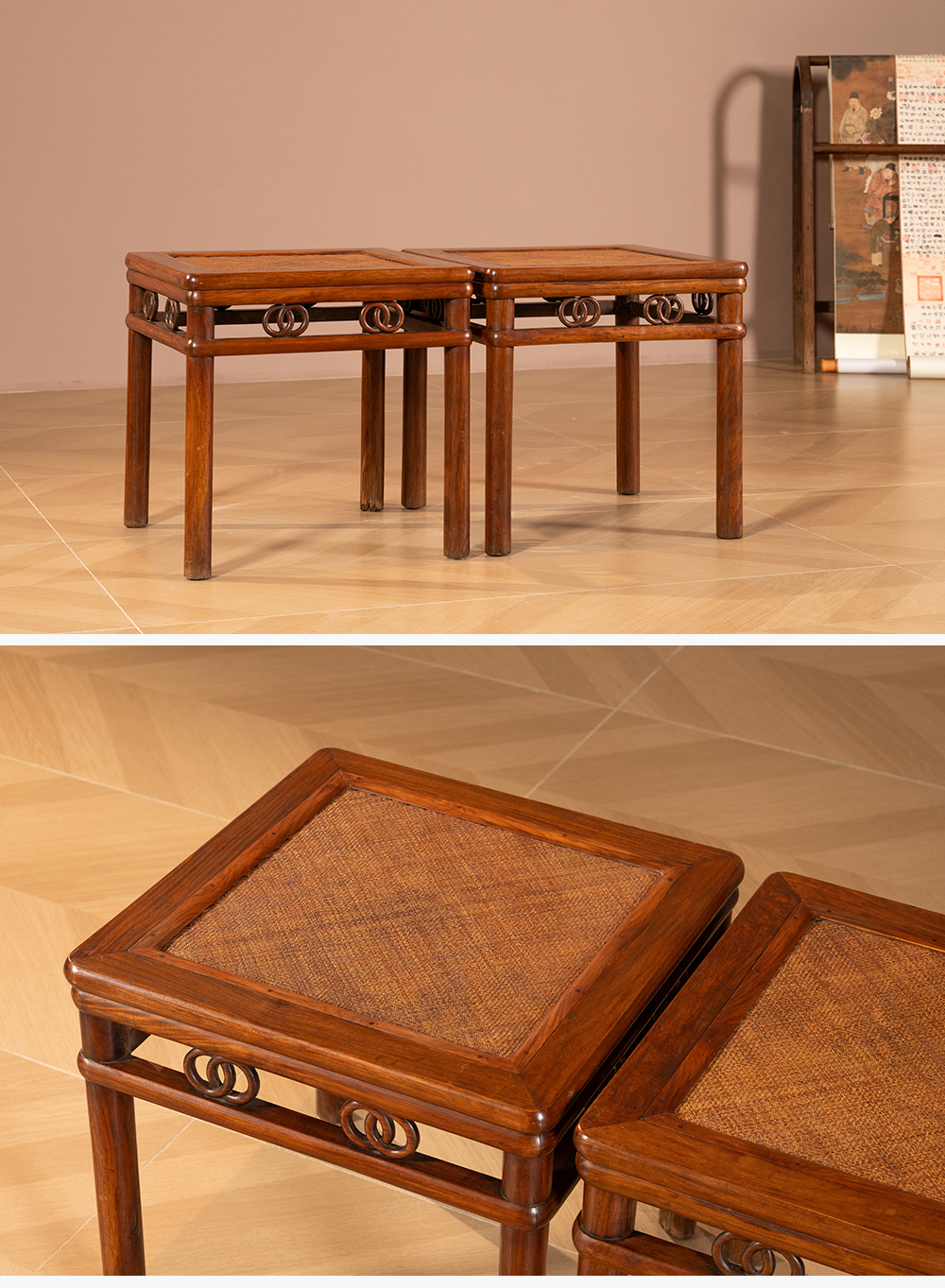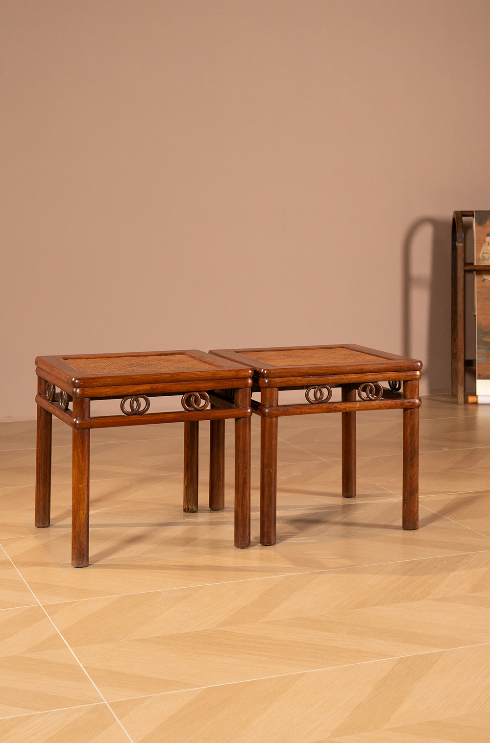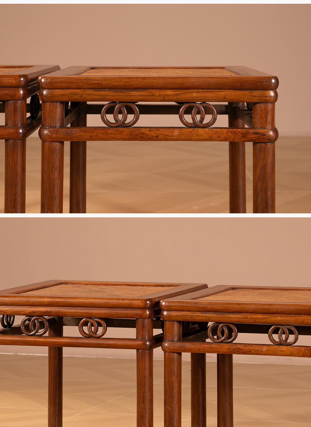 清 黄花梨圆包圆双圈卡子花方凳(一对)