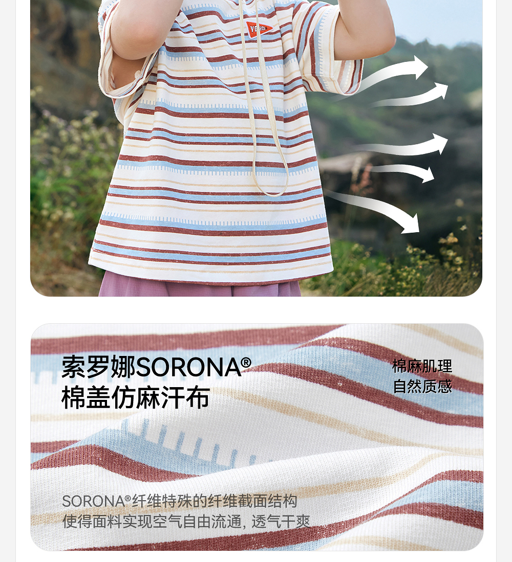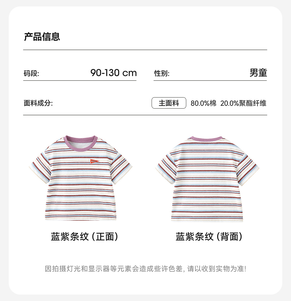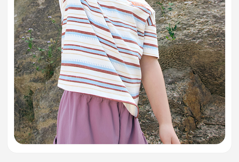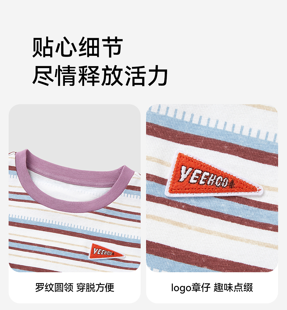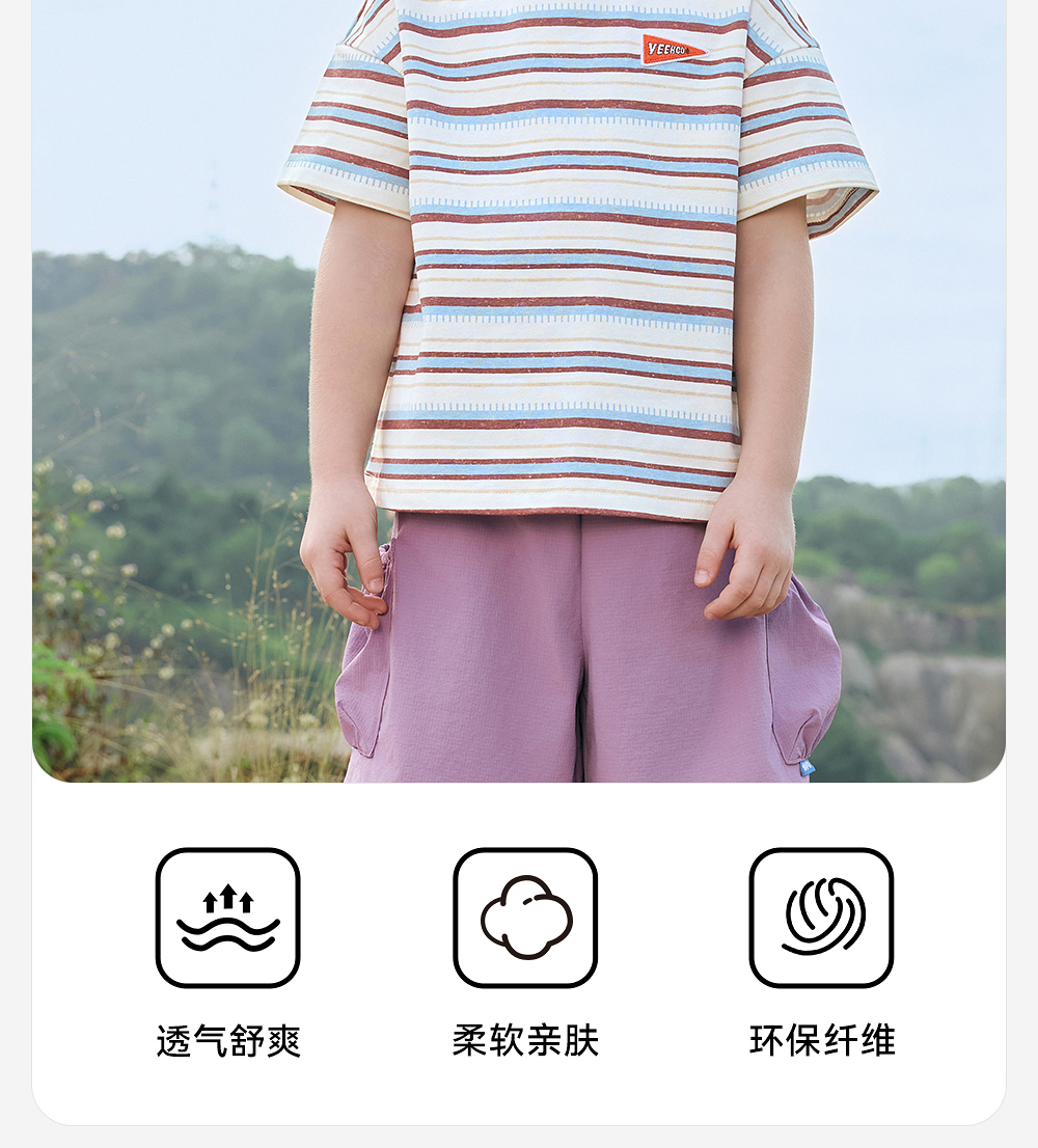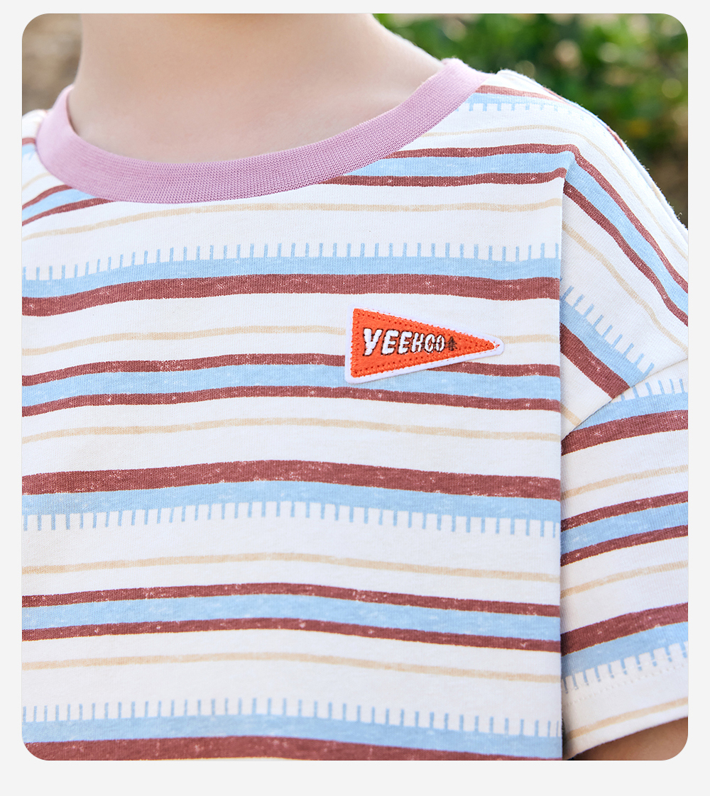 【户外探索系列】英氏儿童T恤上衣夏季短袖透气男童休闲条纹圆领T恤百搭2025新款