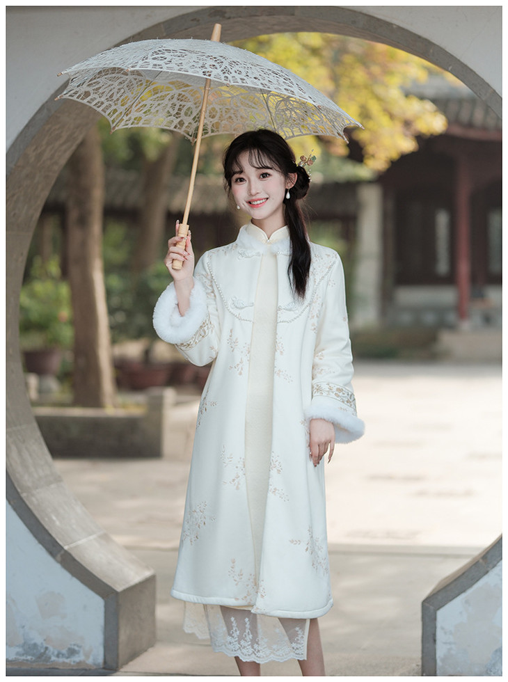 复古民国风麂皮绒,加绒棉服外套配旗袍外搭LSB2484