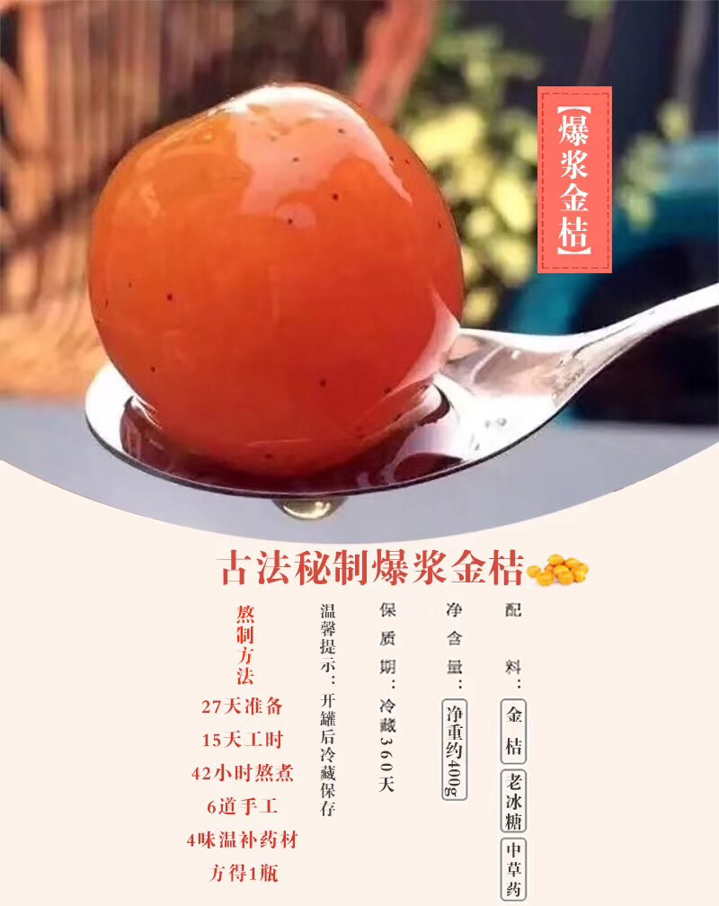 (现货)匠心之选-古法秘制爆浆金桔(每瓶净重约330g,高纯度,冷藏可放,保质期1年以上)