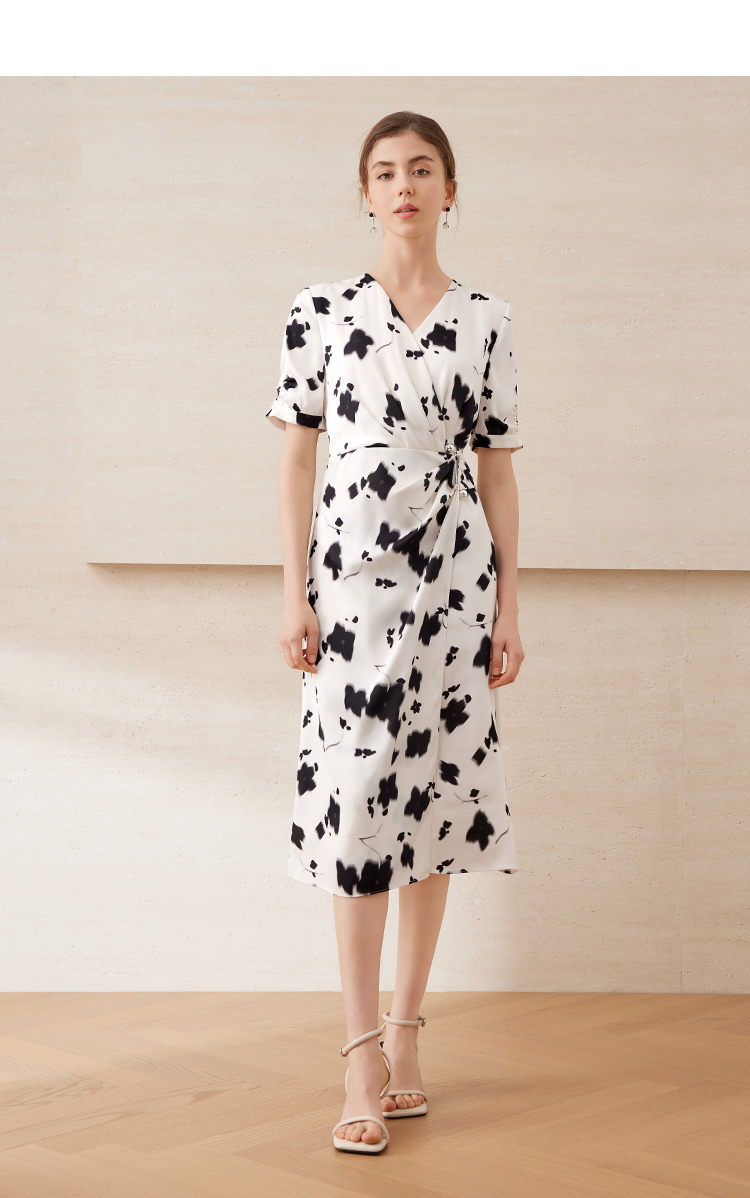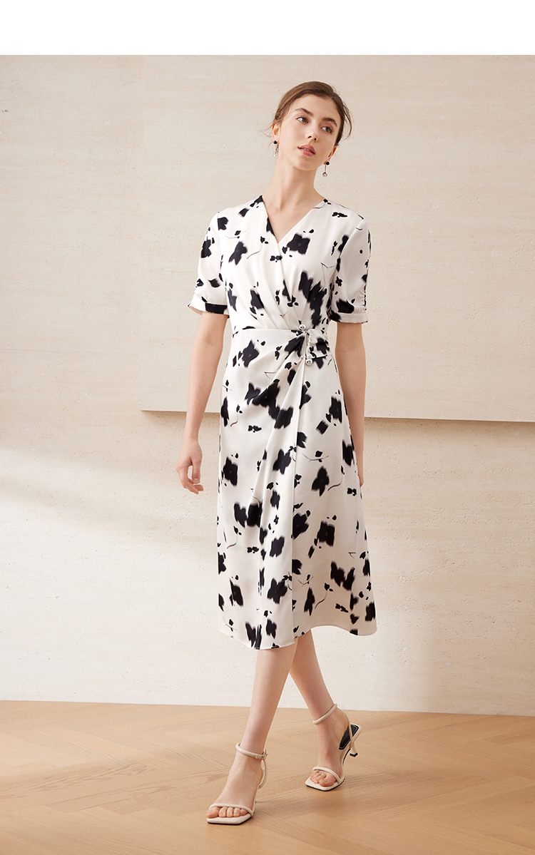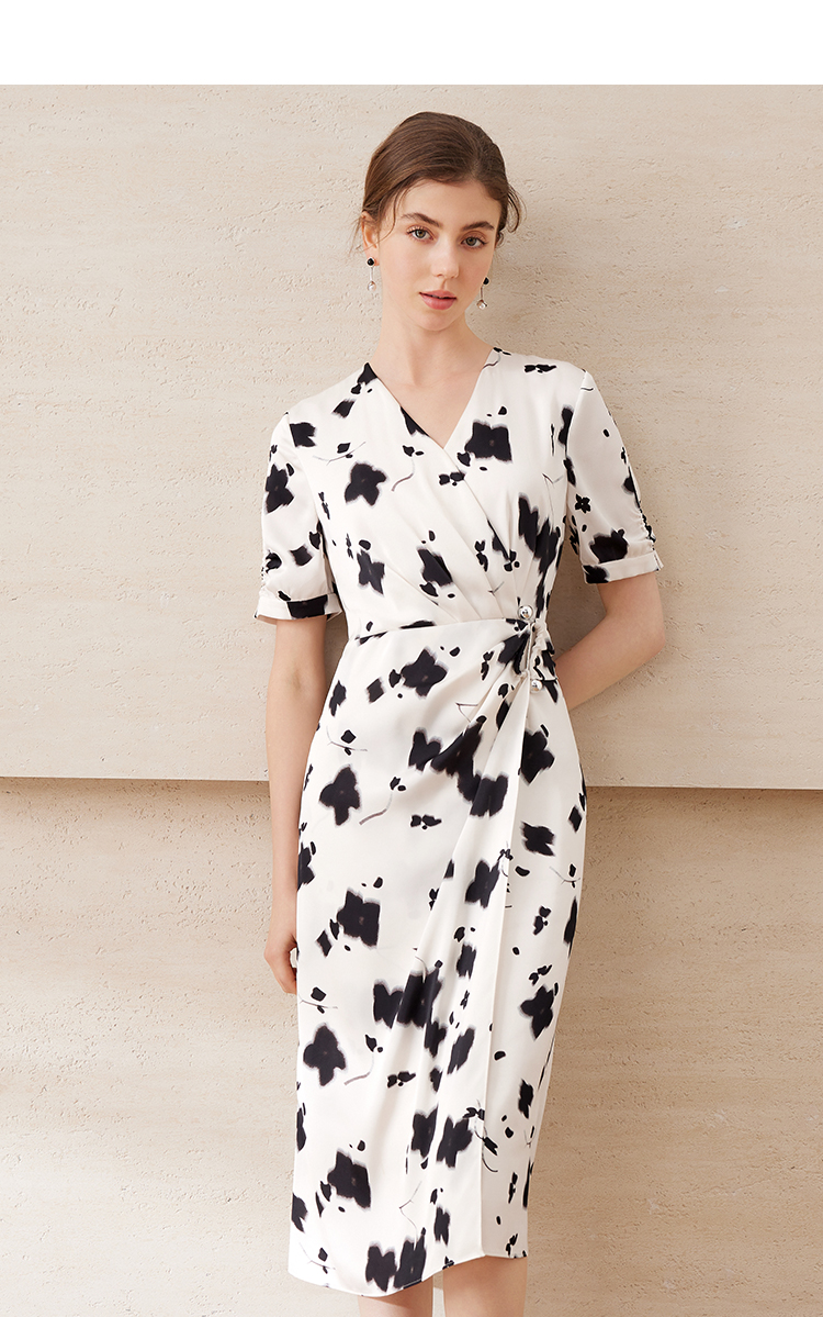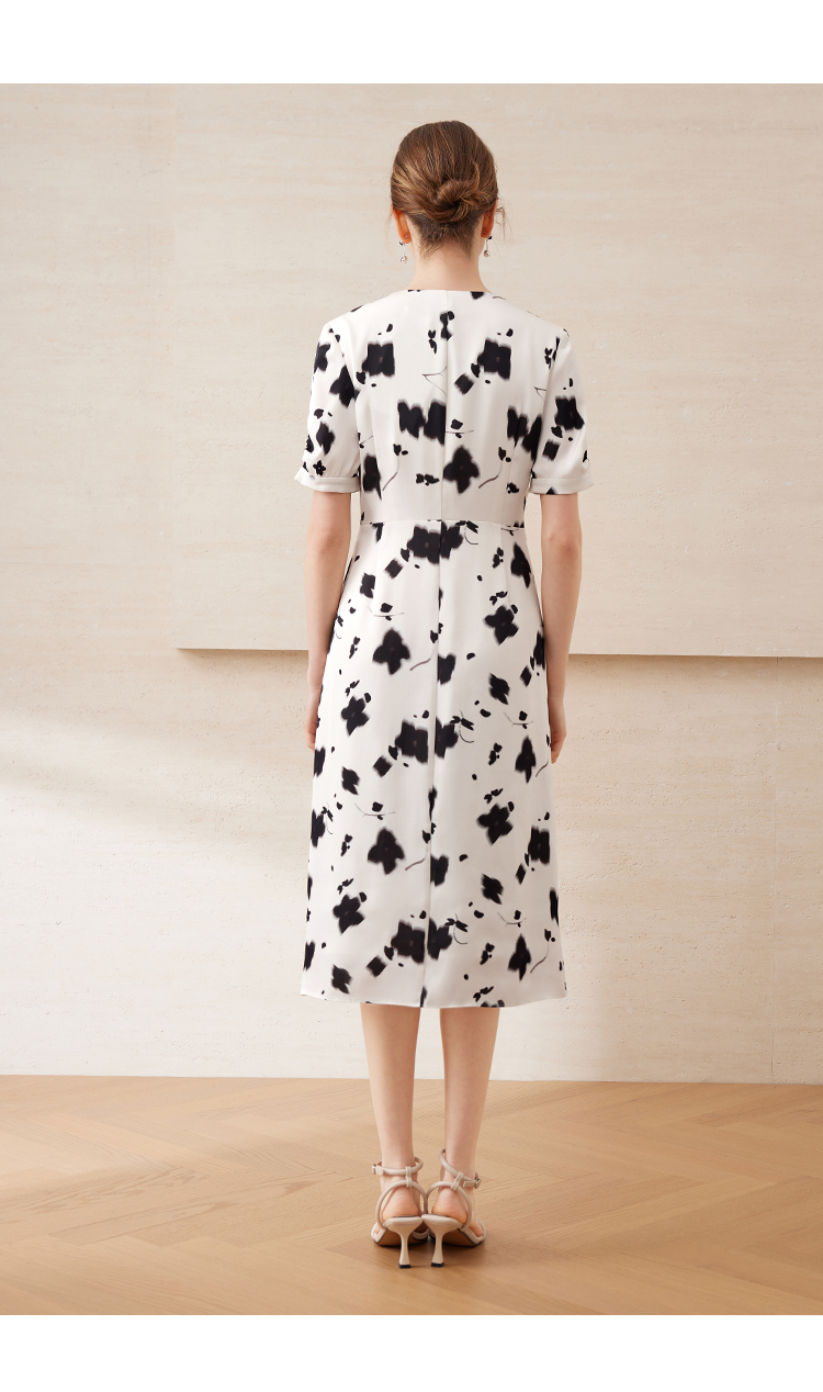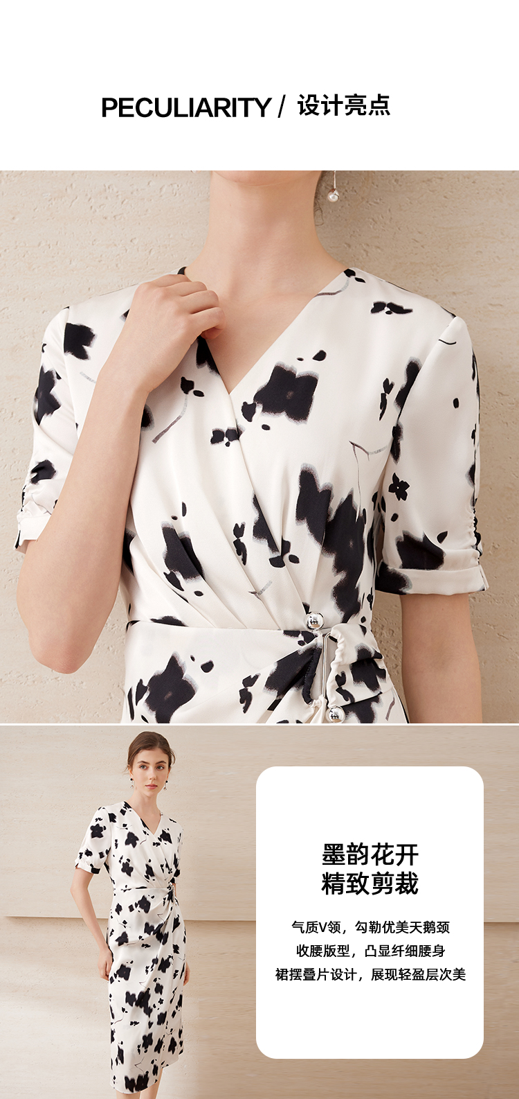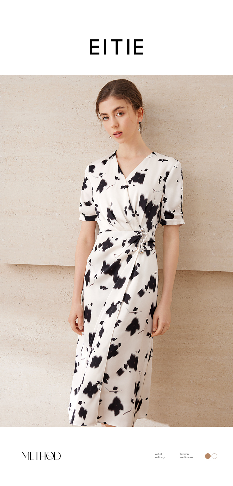 EITIE爱特爱优雅新中式墨染诗意收腰显瘦气质连衣裙2025夏季新款B2507674