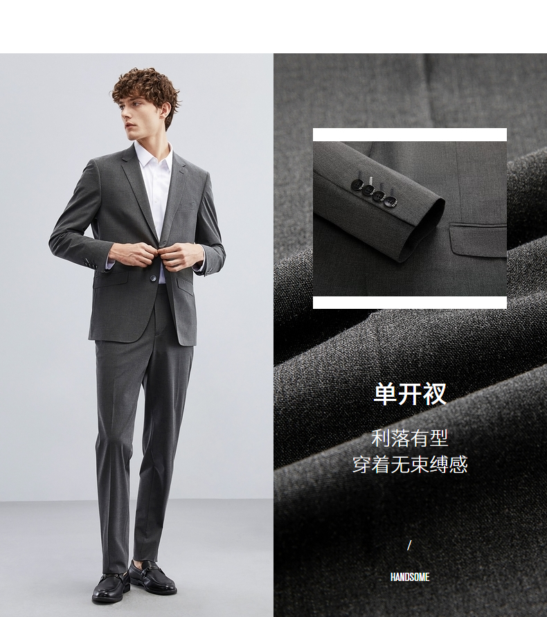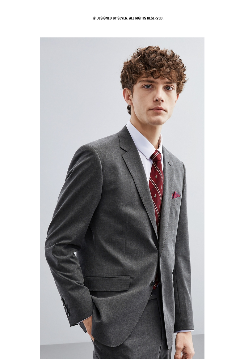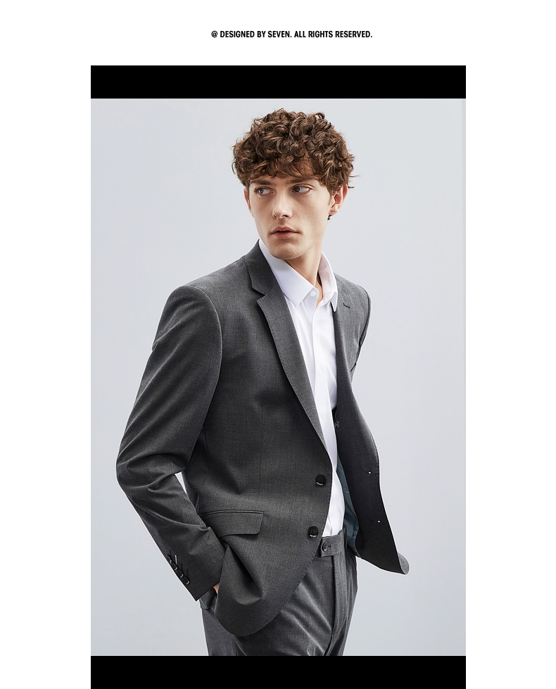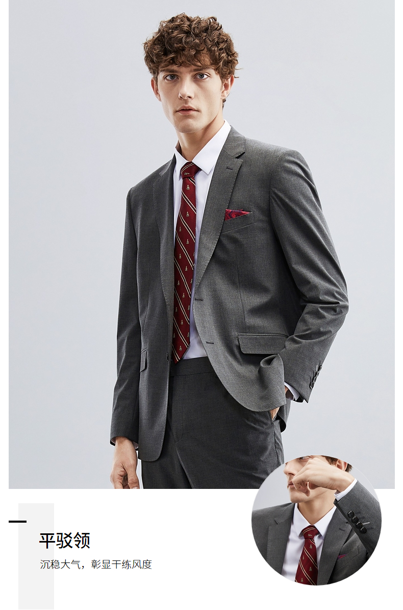 【零染】柒牌西服套装男春季新款商务职业正装色纺西服两件套 124C70080