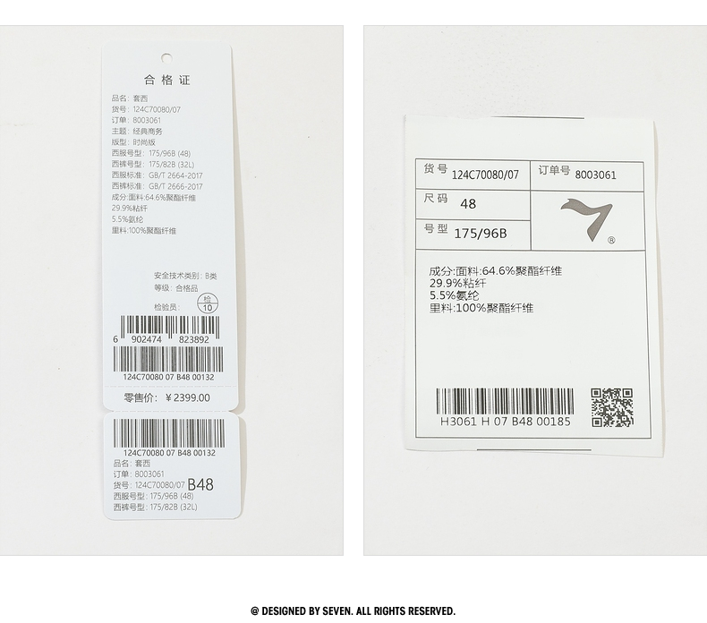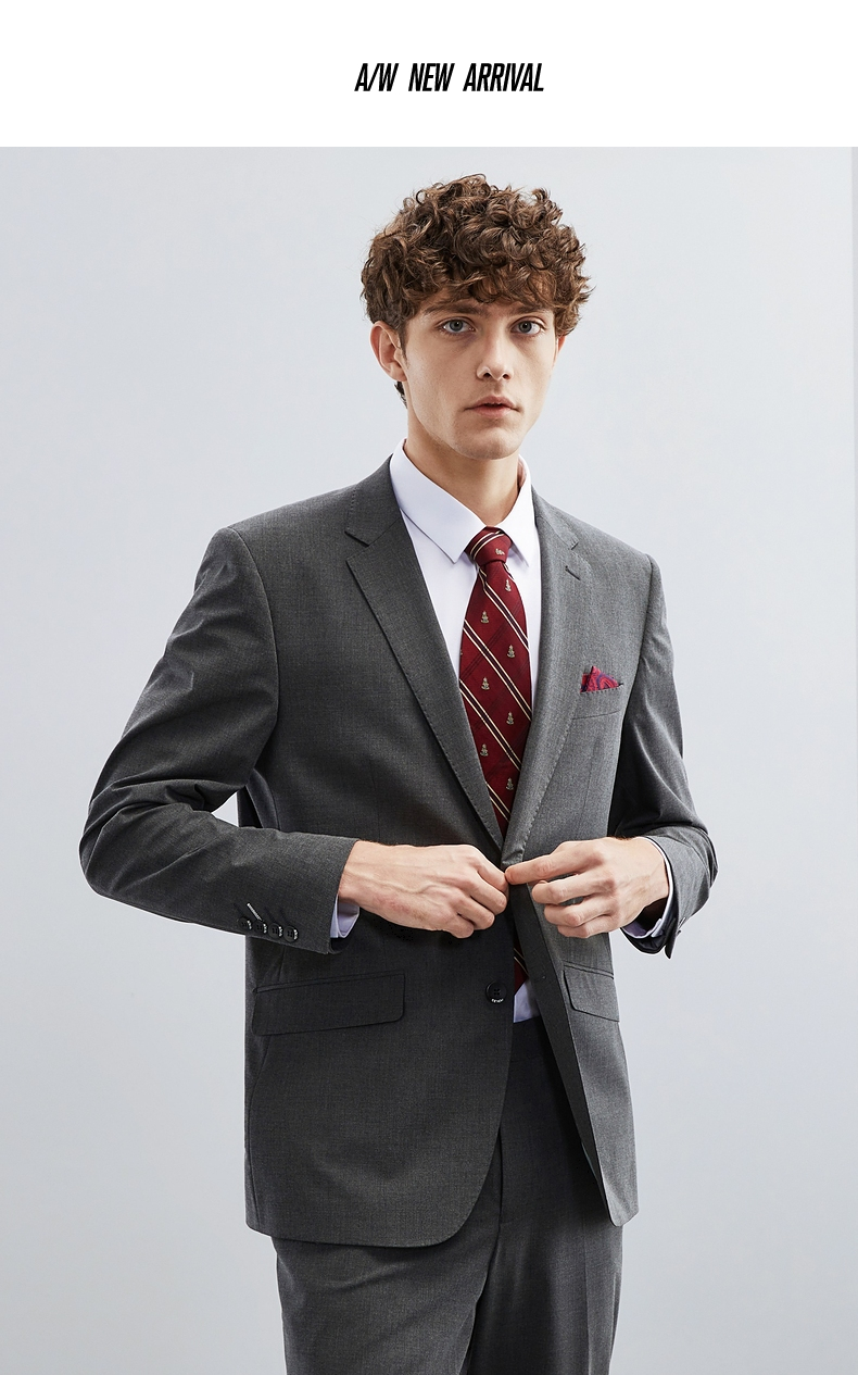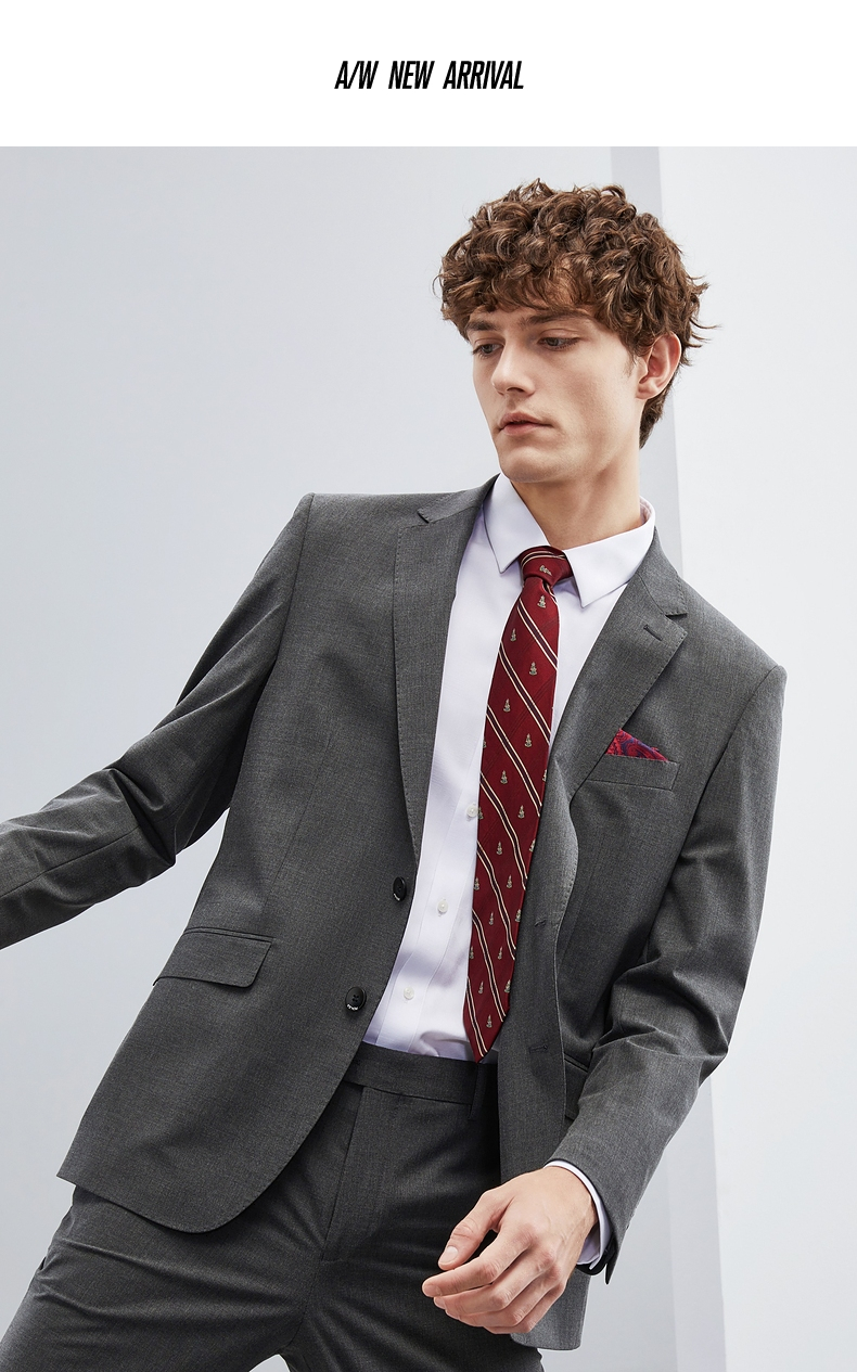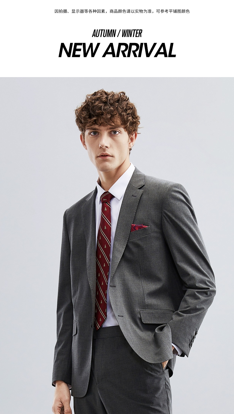 【零染】柒牌西服套装男春季新款商务职业正装色纺西服两件套 124C70080
