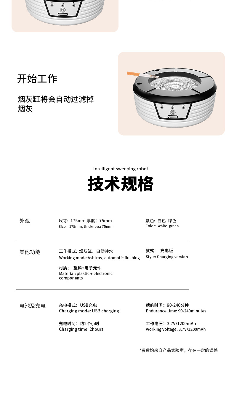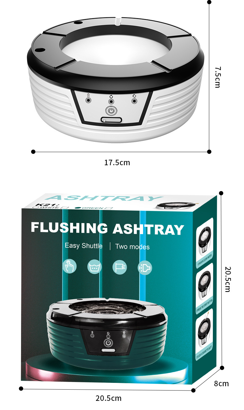 【新款智能冲水防飞灰烟灰缸】分解异味感应冲水 家用办公室烟灰缸 长效续航