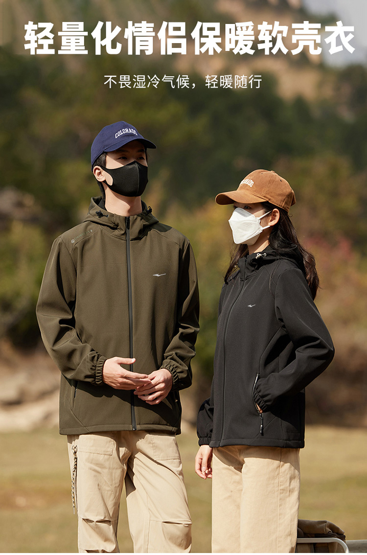 【品名】鸿星尔克情侣款软壳冲锋衣
