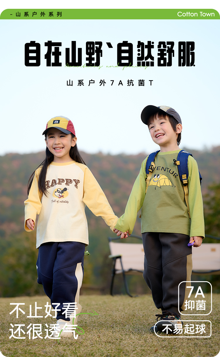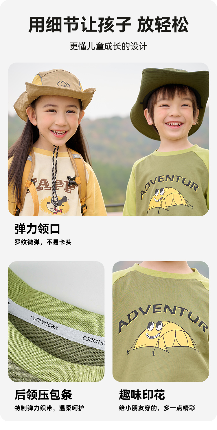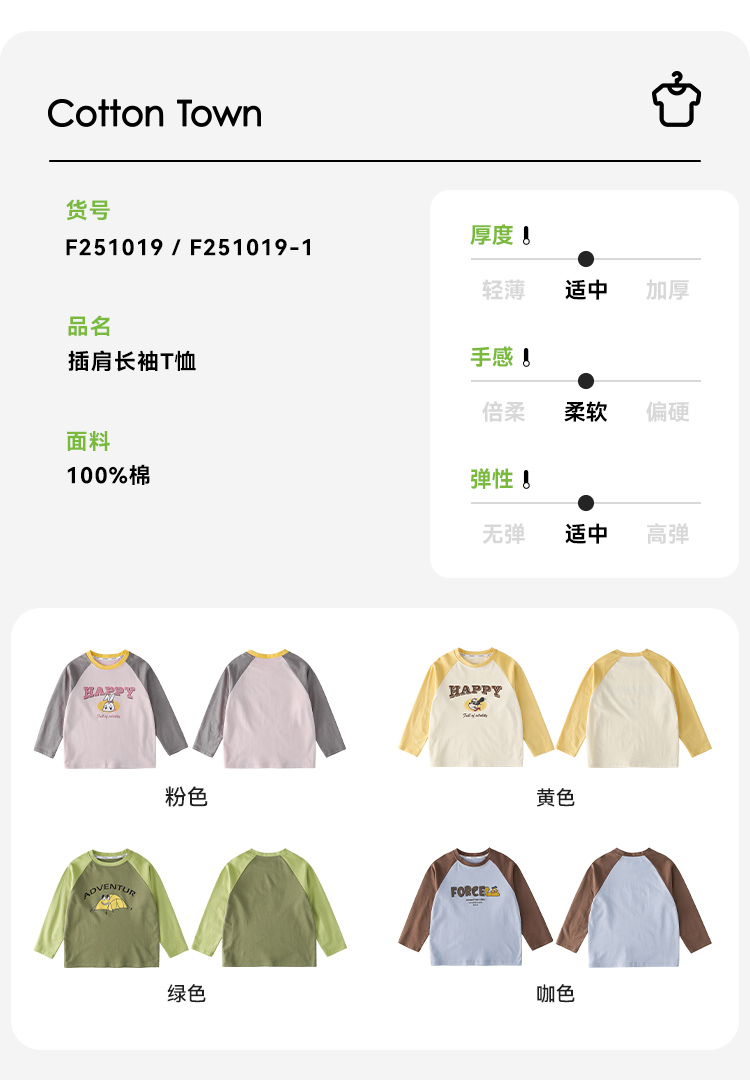 【7A抗菌纯棉】棉花堂2025年新款撞色运动插肩长袖T恤F251019