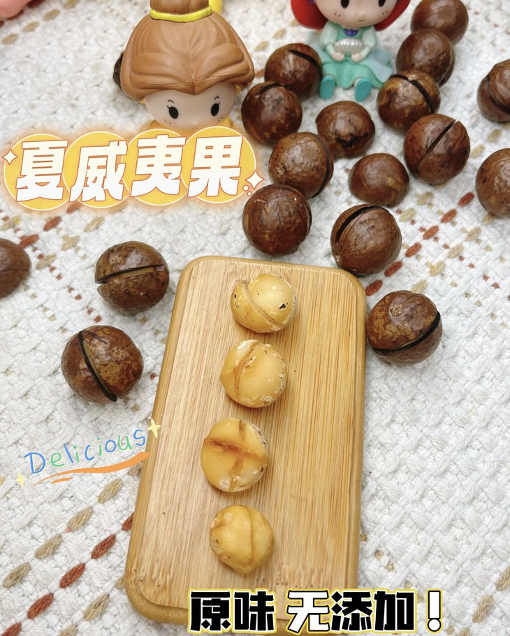 颗颗饱满的夏威夷果,外皮油亮,散发着自然的气