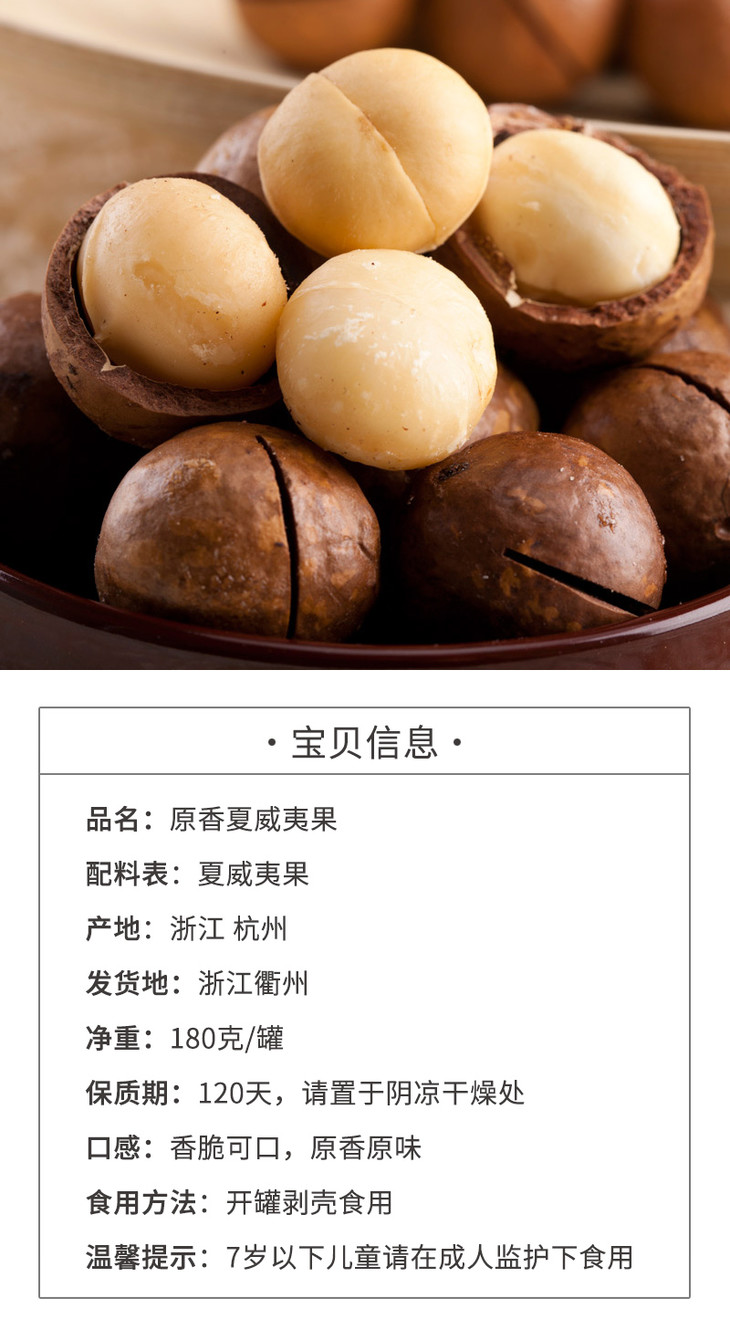 买3罐送1罐【原香夏威夷果】南非产区,当季新货,无任何添加,果肉偏黄,松脆清香,加大开口更好剥开,原味十足哦!~