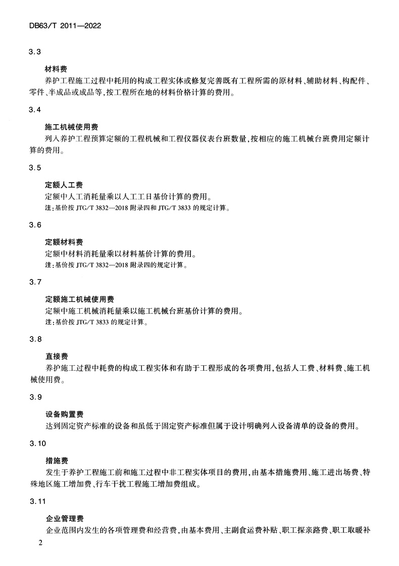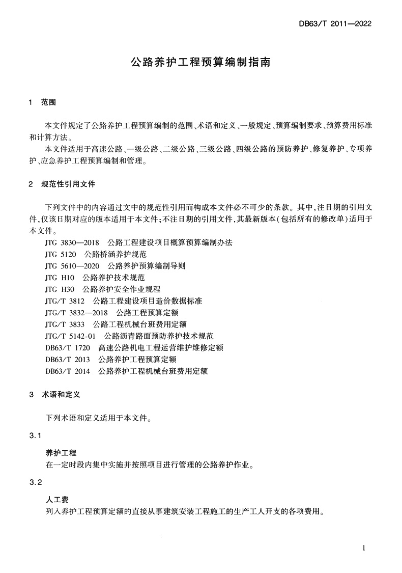 公路养护工程预算编制指南(DB63/T 2011—2022)