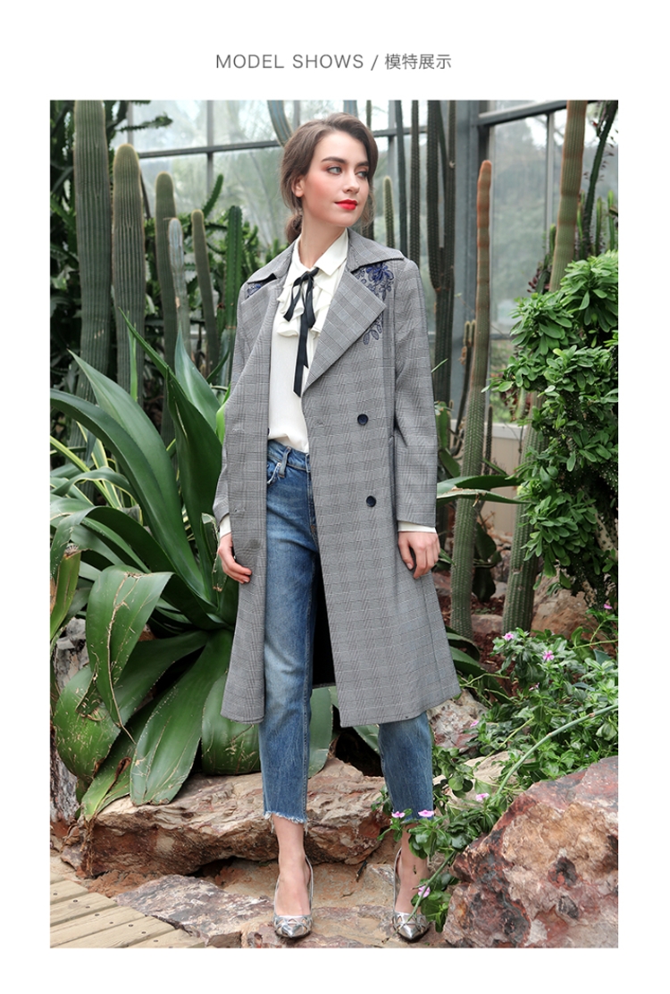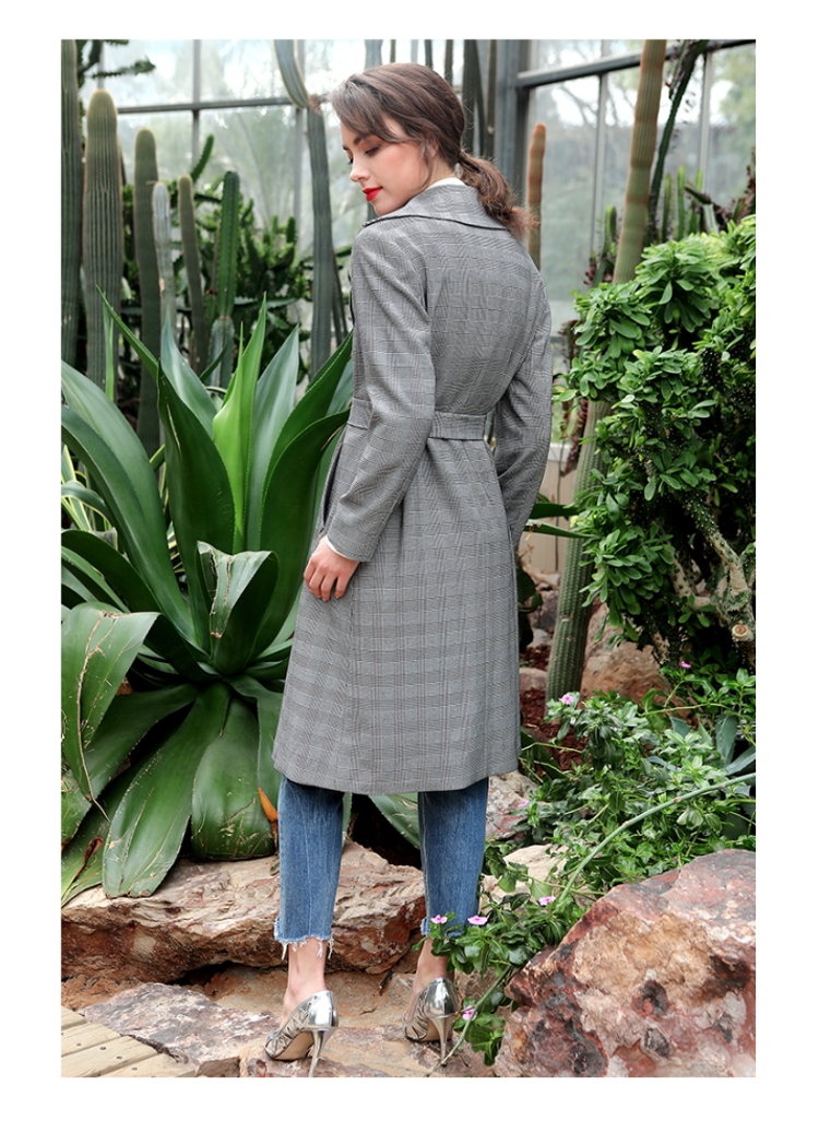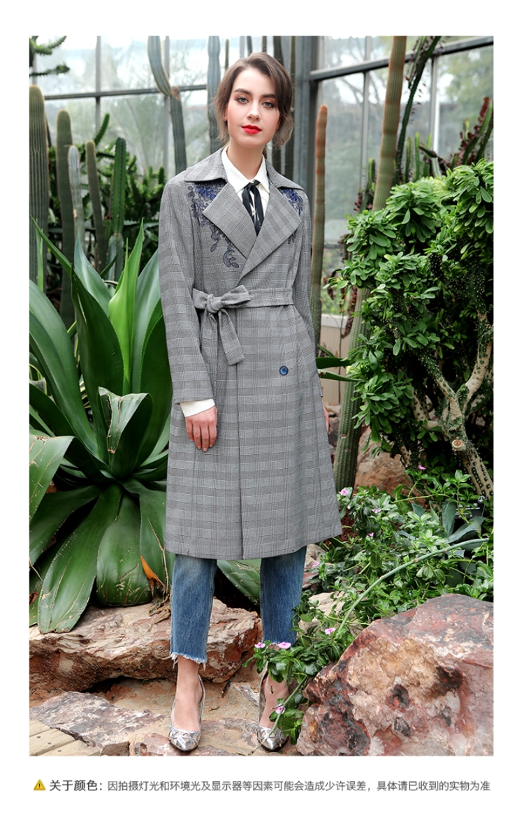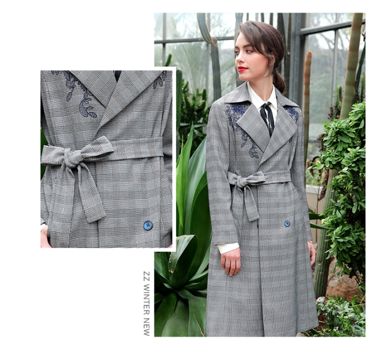 佐尔美春秋节新品格纹气质灰女士中长款过膝风衣潮流外套E83FZ37