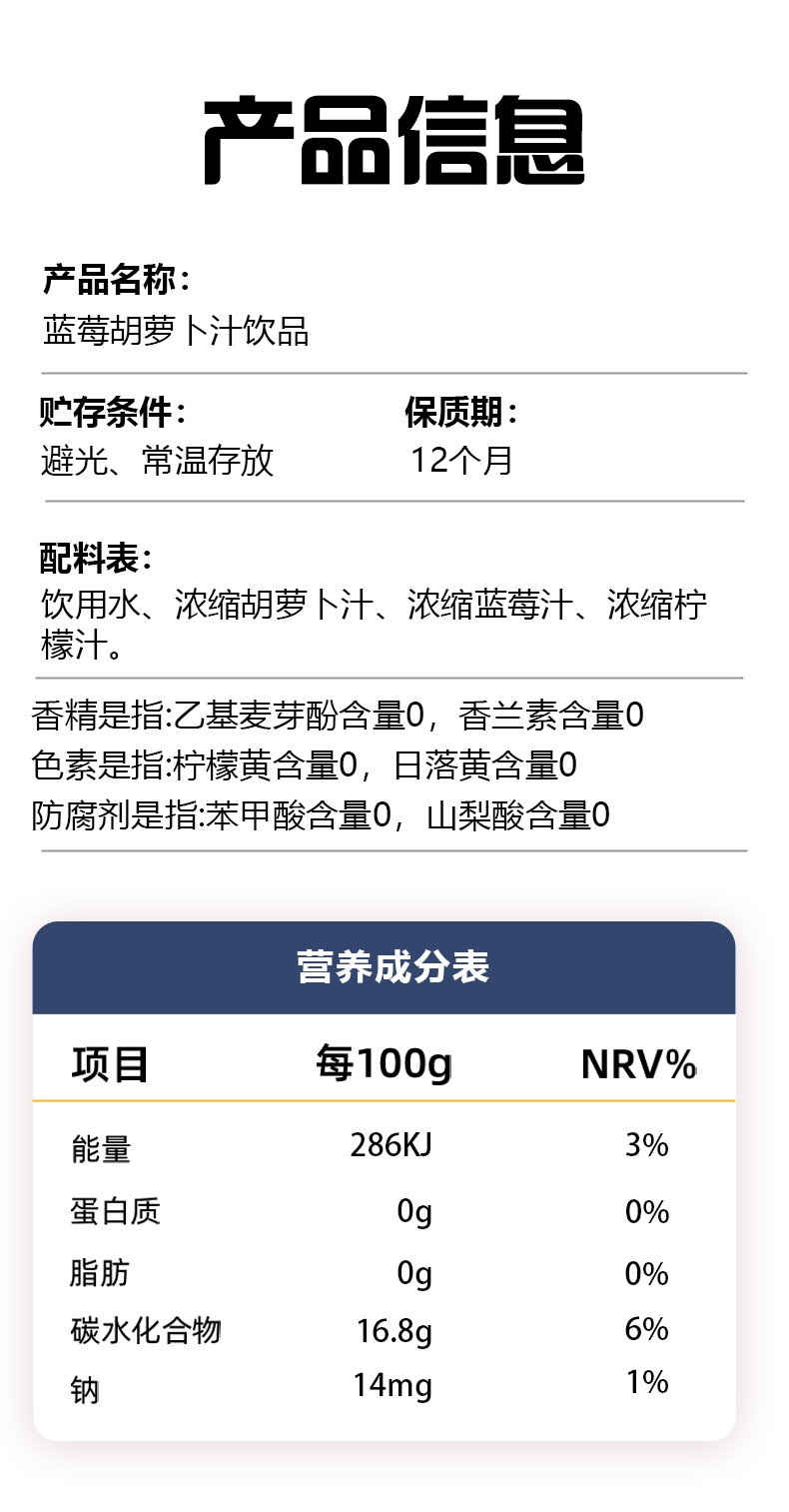 沫小言蓝莓胡萝卜汁 简单纯粹 来自大自然的花青素 商品图2