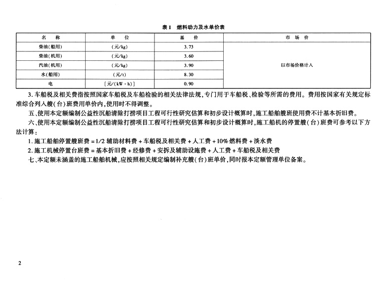 海上沉船清除打捞工程船舶机械艘(台)班费用定额