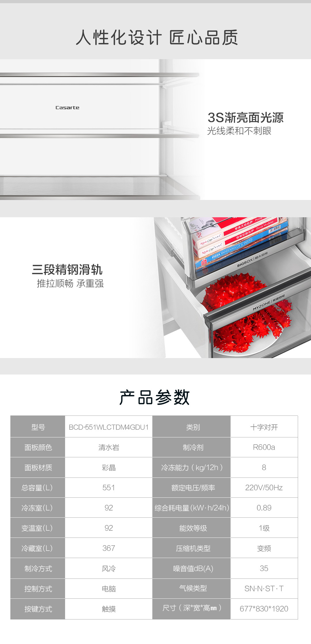 卡萨帝(Casarte)冰箱 BCD-551WLCTDM4GDU1