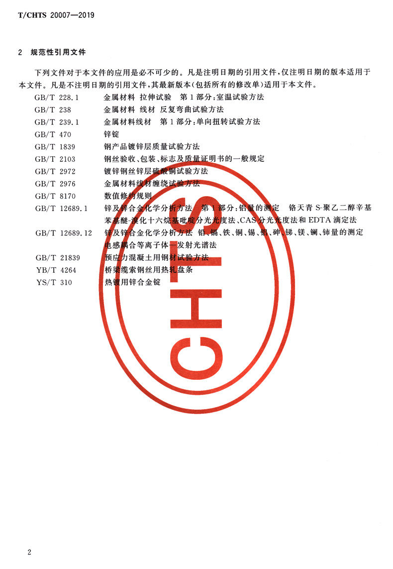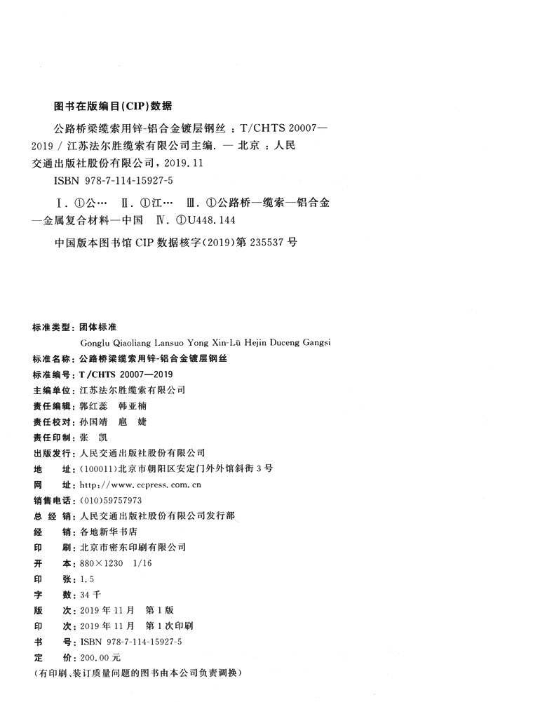书名:公路桥梁缆索用锌-铝合金镀层钢丝(T/CHTS 20007—2019)