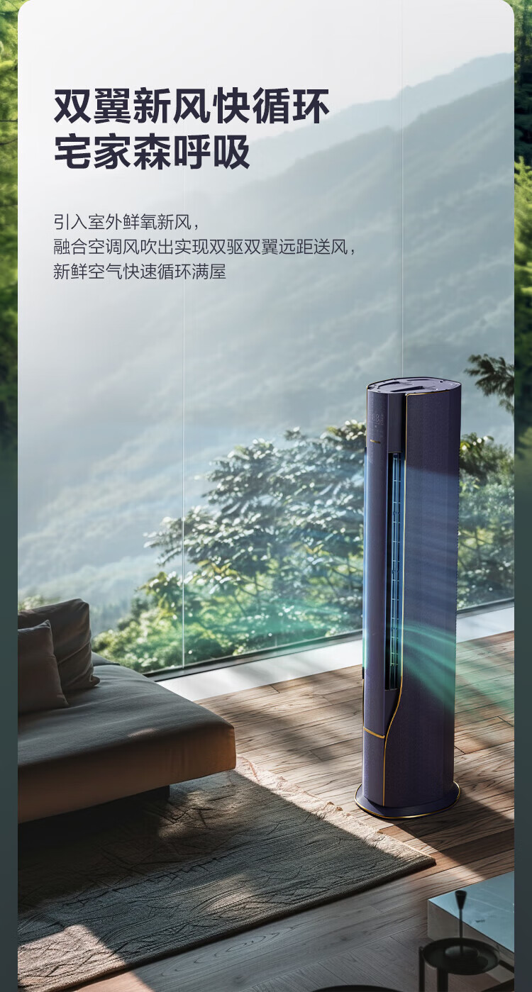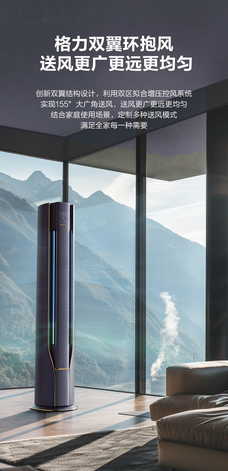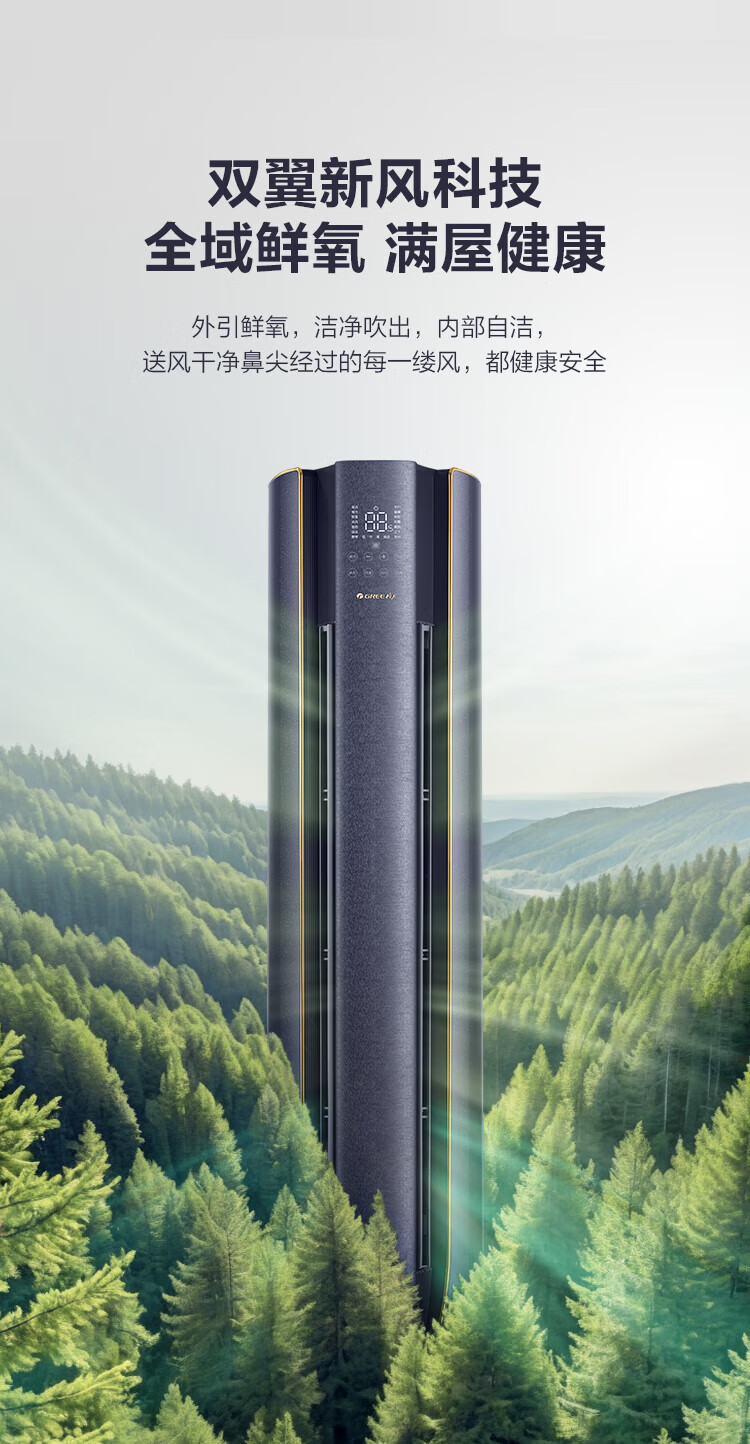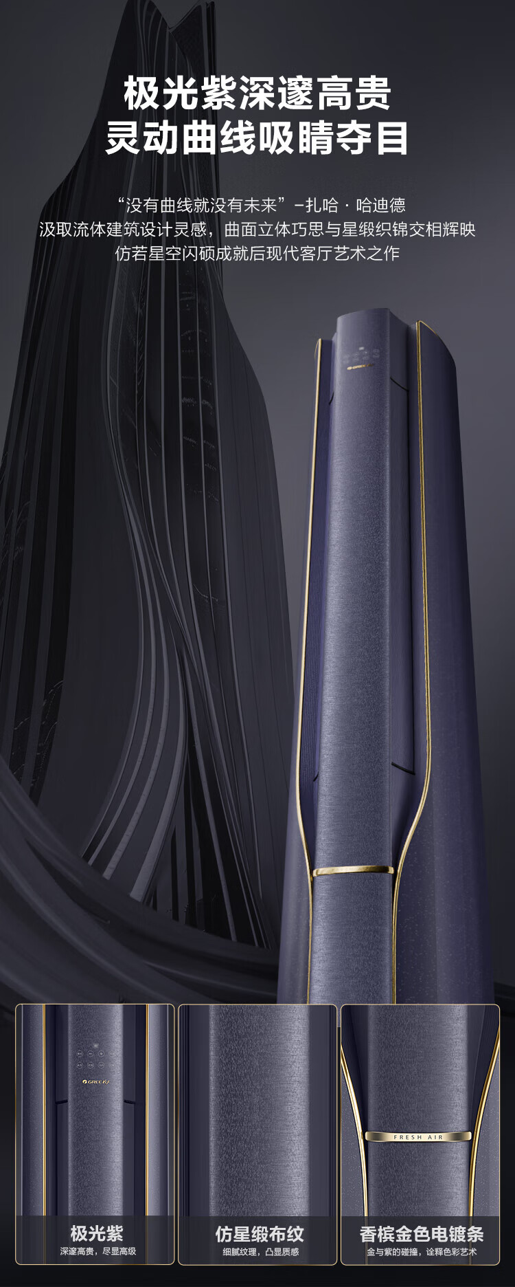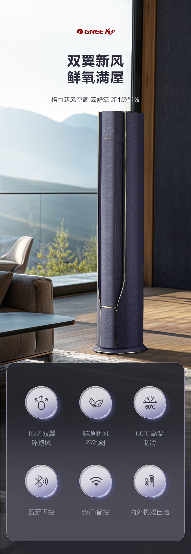格力(GREE)3匹 云舒氧 新一级能效 鲜净新风 双翼环抱风 立柜式空调柜机 KFR-72LW/NhKa1BG(极光紫)
