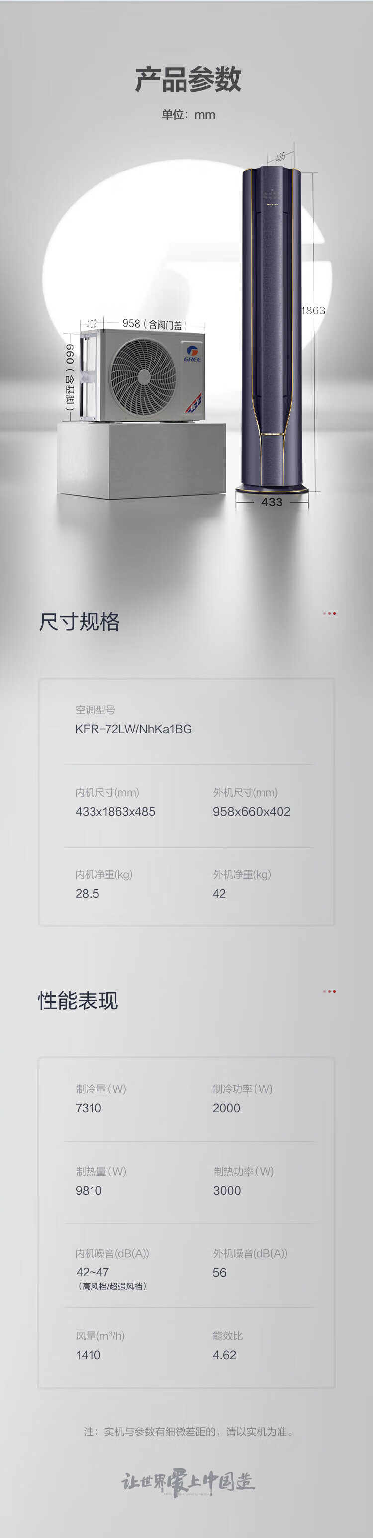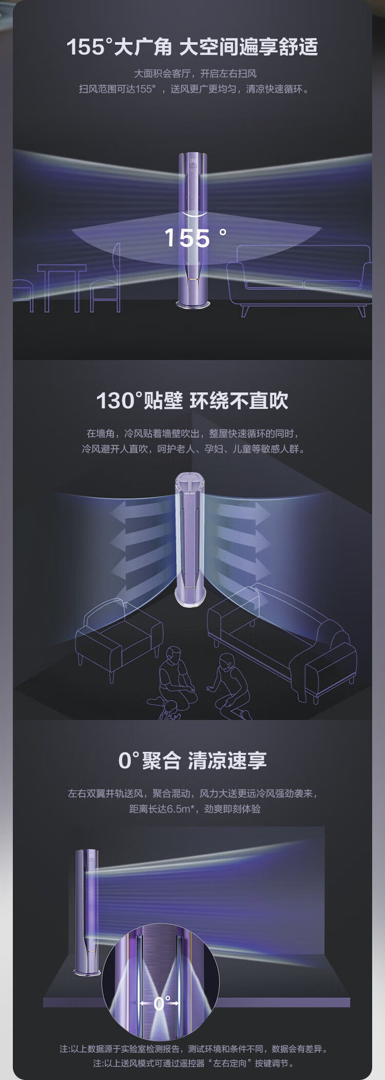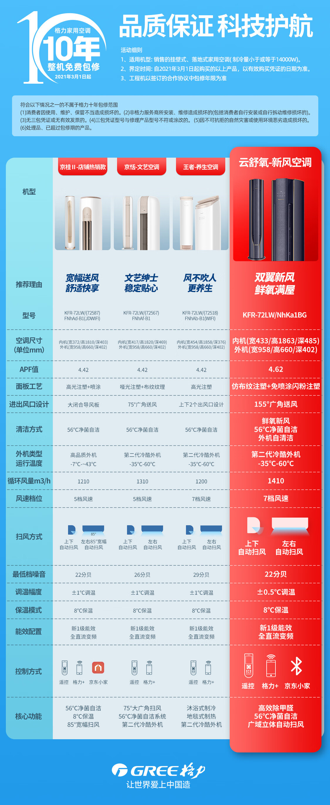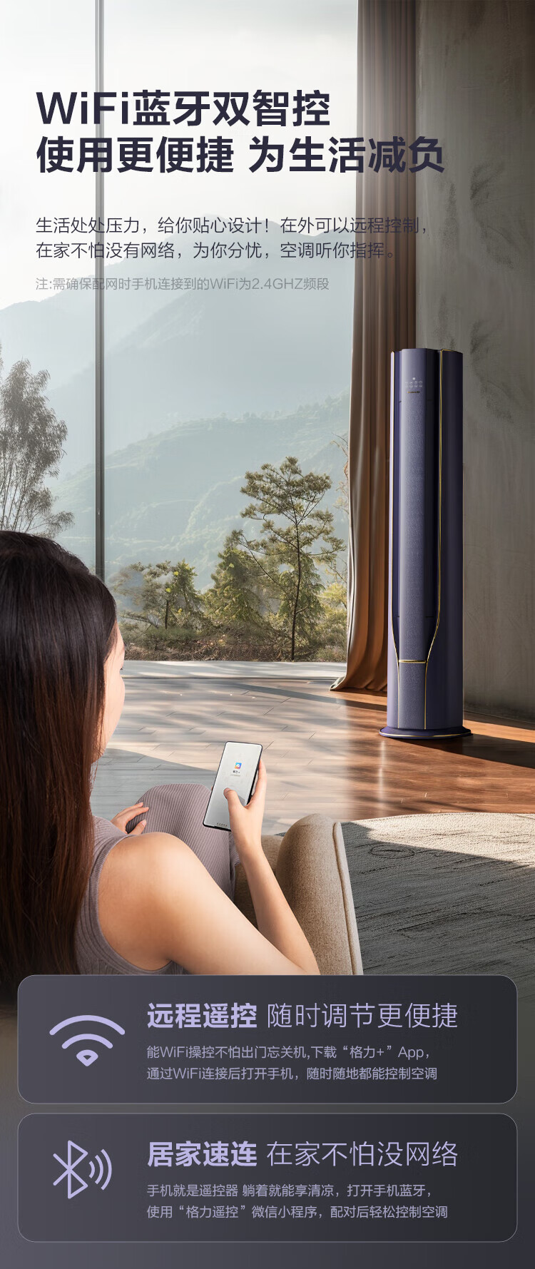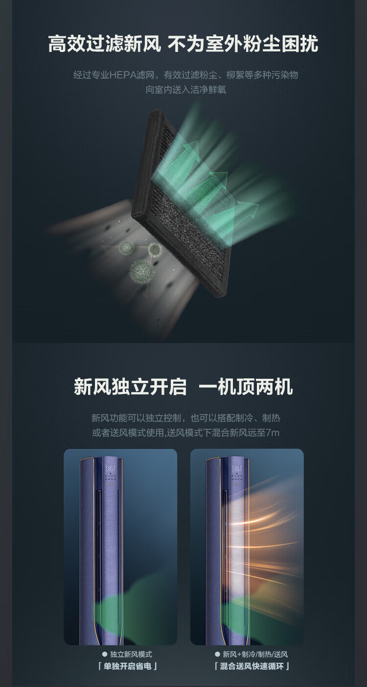 格力(GREE)3匹 云舒氧 新一级能效 鲜净新风 双翼环抱风 立柜式空调柜机 KFR-72LW/NhKa1BG(极光紫)