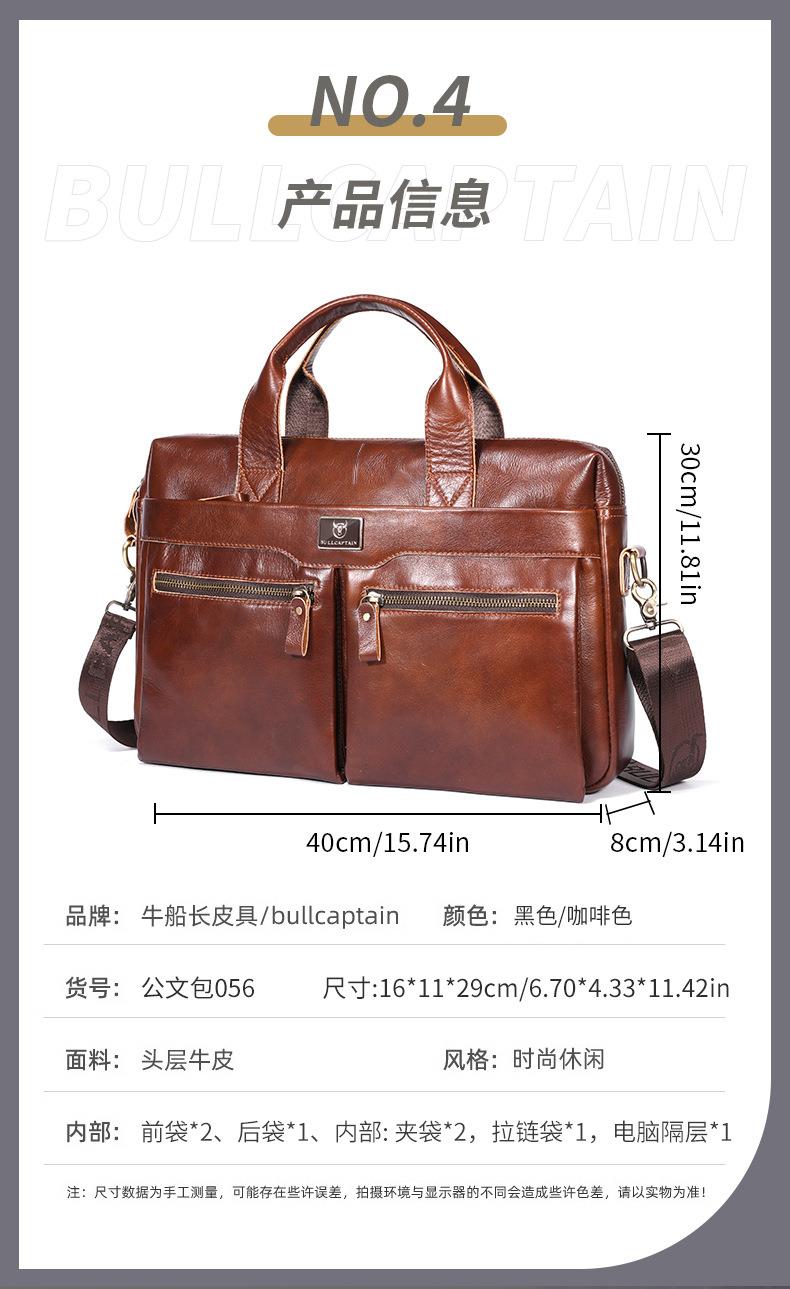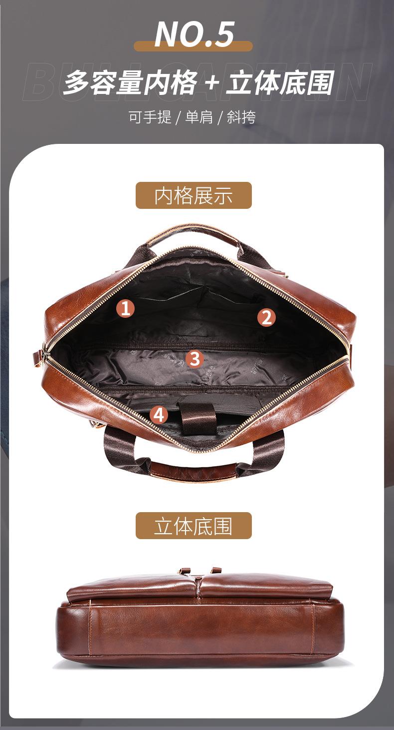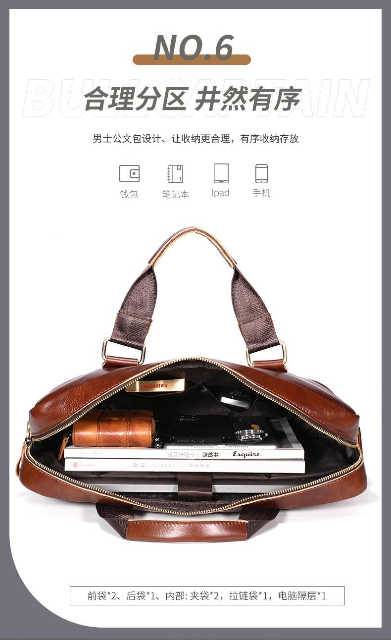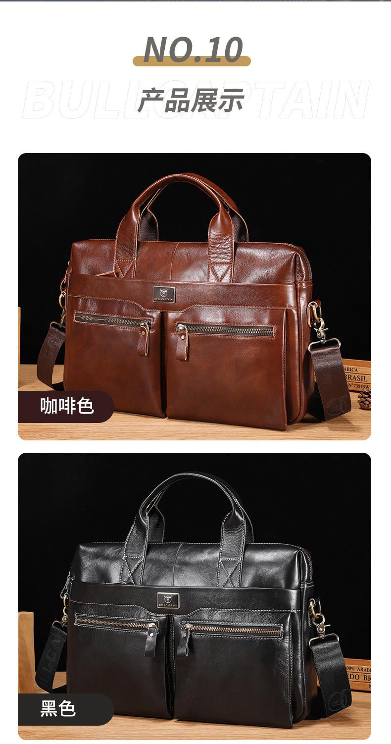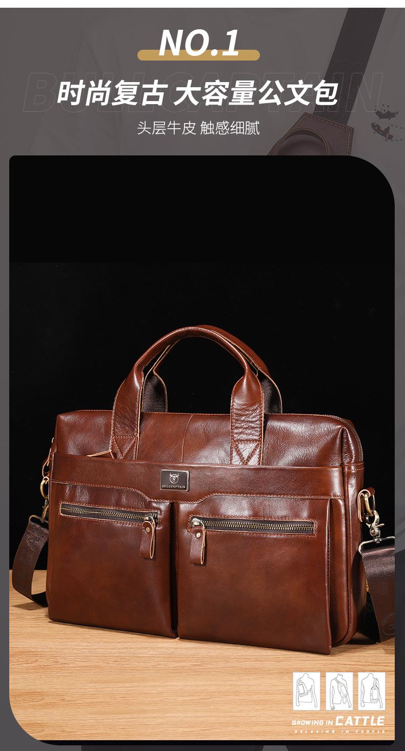 牛船长皮具公文包男单肩斜跨手提包头层牛皮大容量复古商务电脑包
