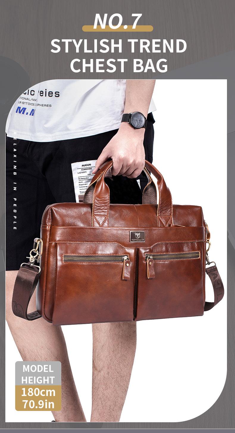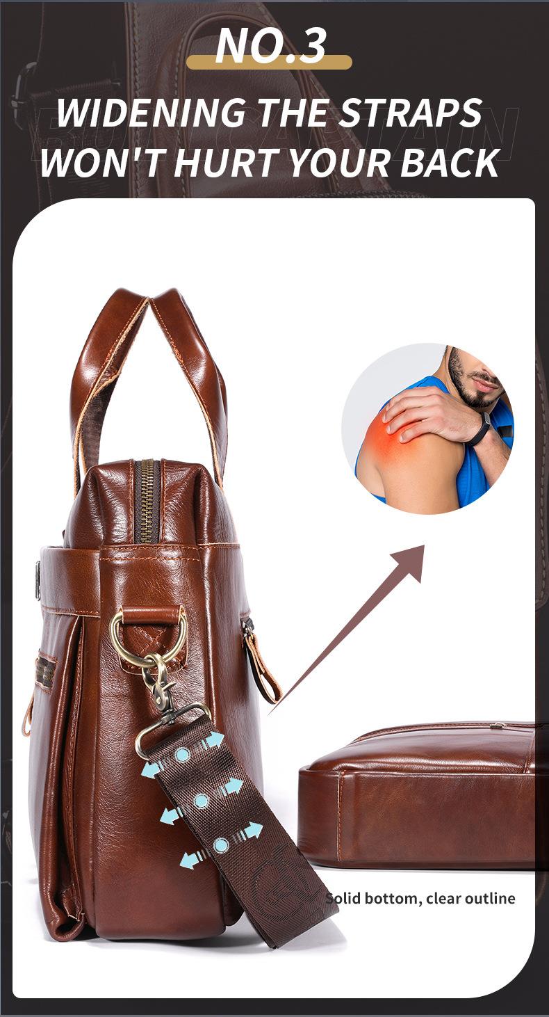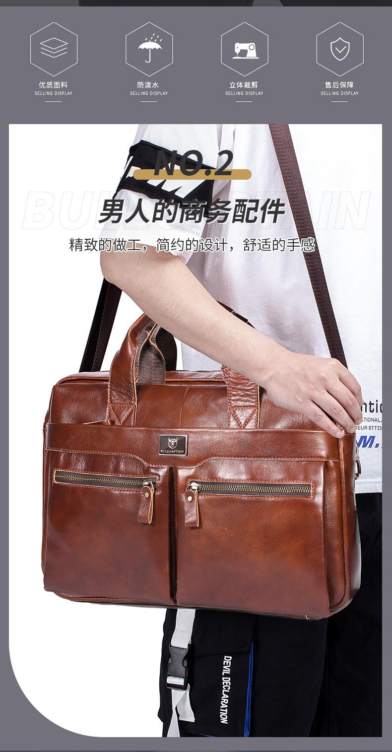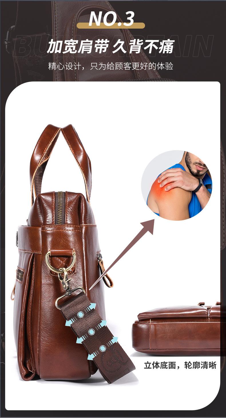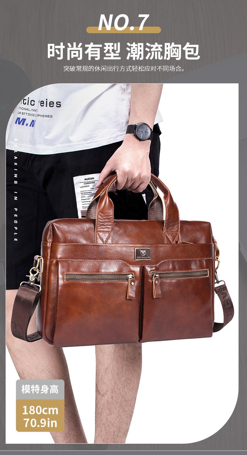牛船长皮具公文包男单肩斜跨手提包头层牛皮大容量复古商务电脑包