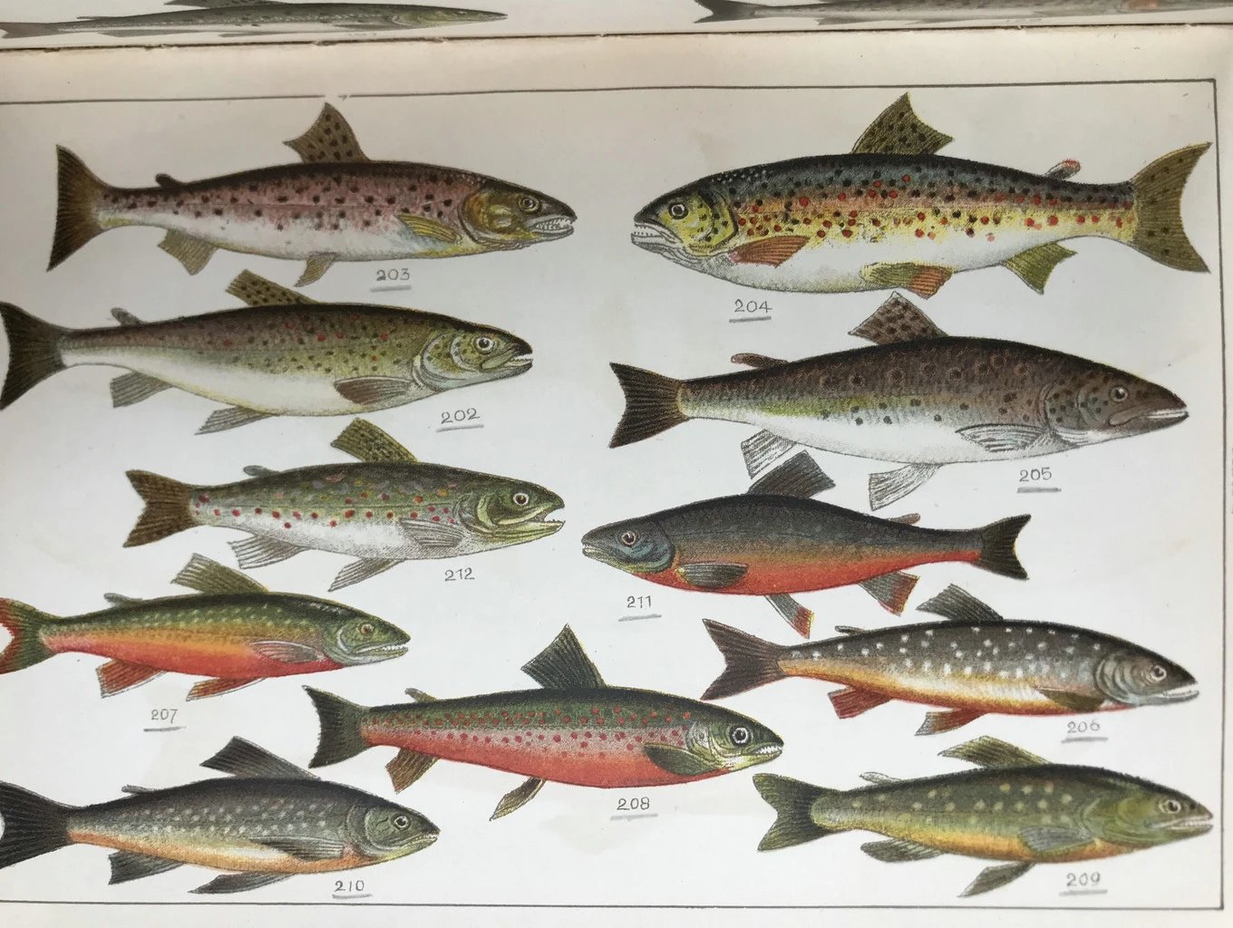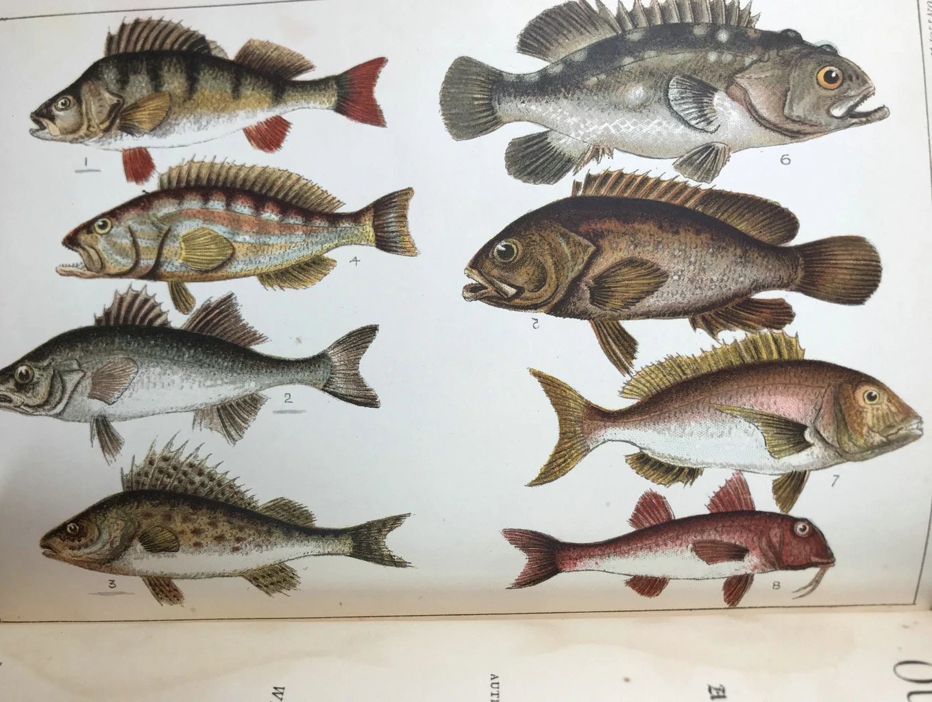 约20世纪早期 英国鱼类图鉴 33页彩色与大量黑白插图 漆布精装32开