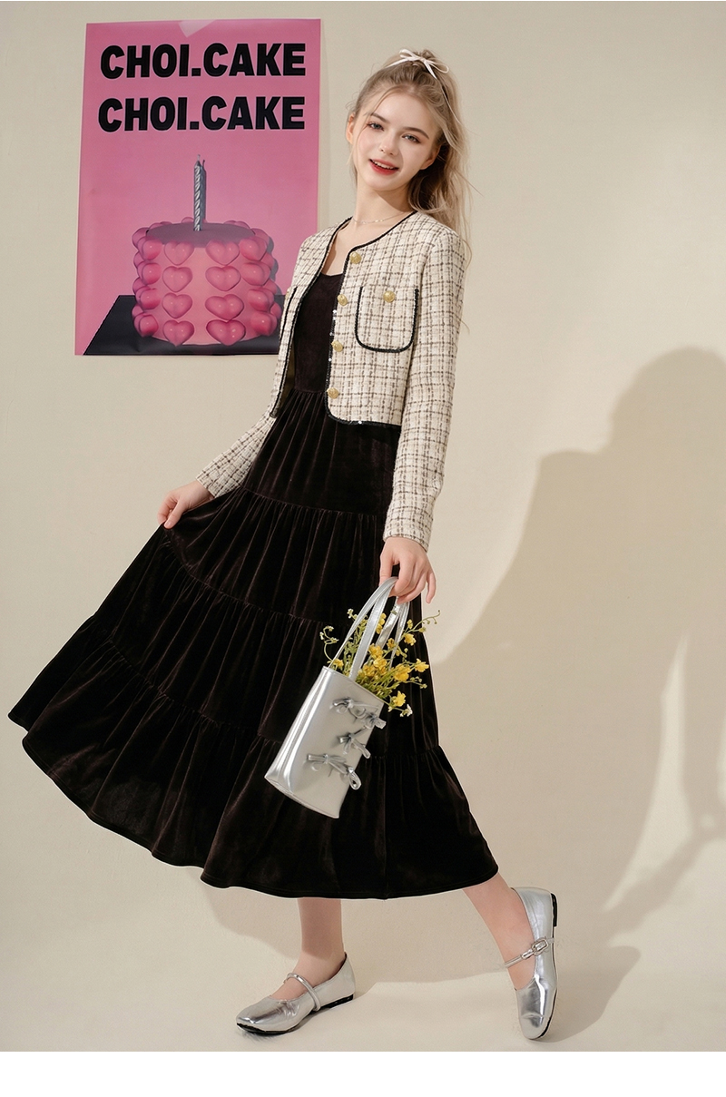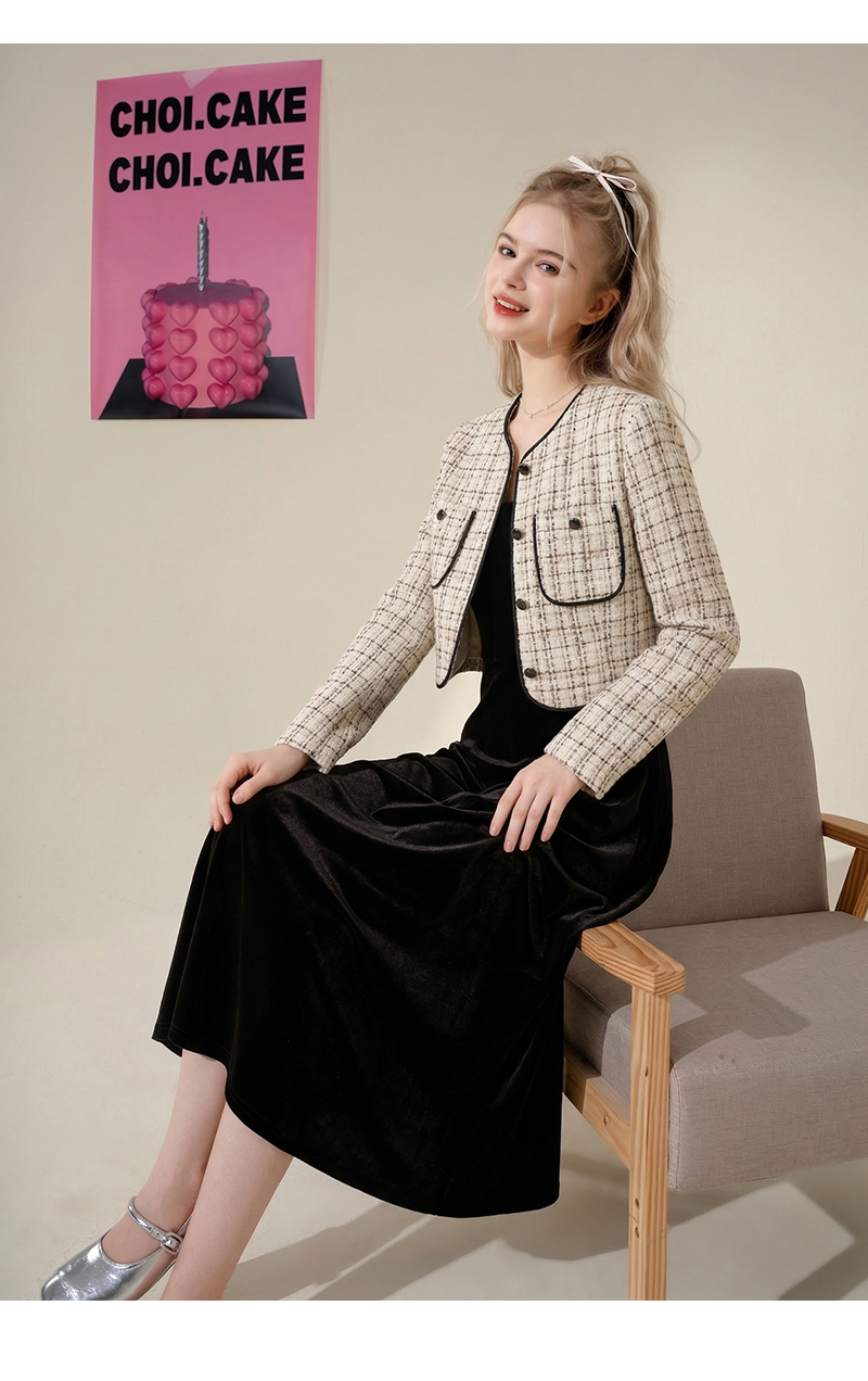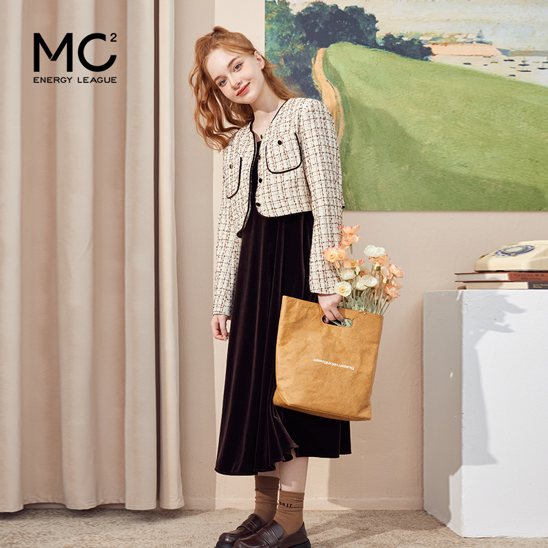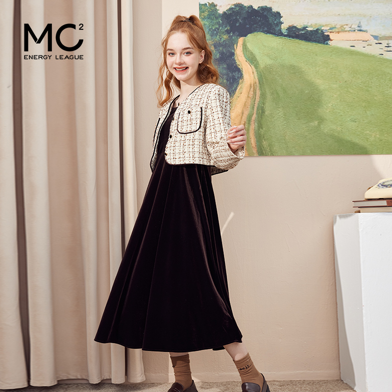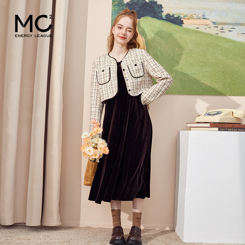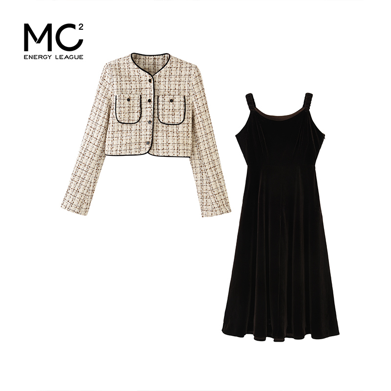 mc2气质显瘦小香风套装女2023秋冬新款法式复古千金风外套+吊带裙