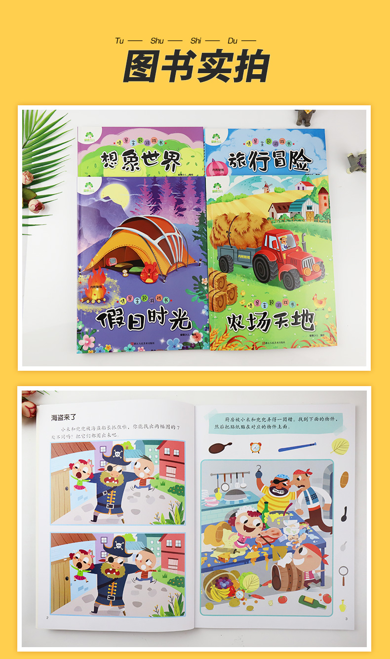 正版情景主题游戏书全4册专注力训练书儿童益智游戏 逻辑思维训练图画捉迷藏找不同迷宫书儿童