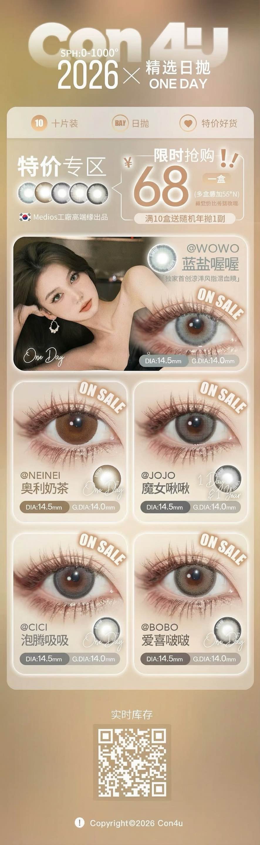 2盒158 3盒198 10盒618「韩国」CON4U 日抛 10片装