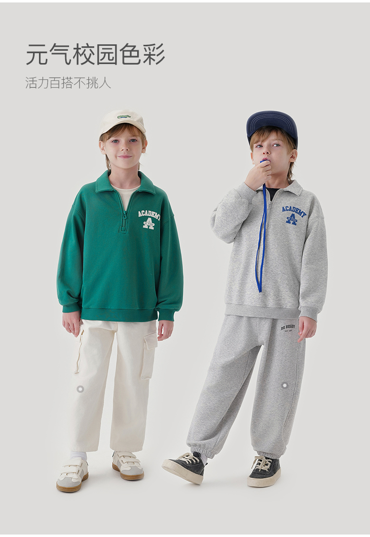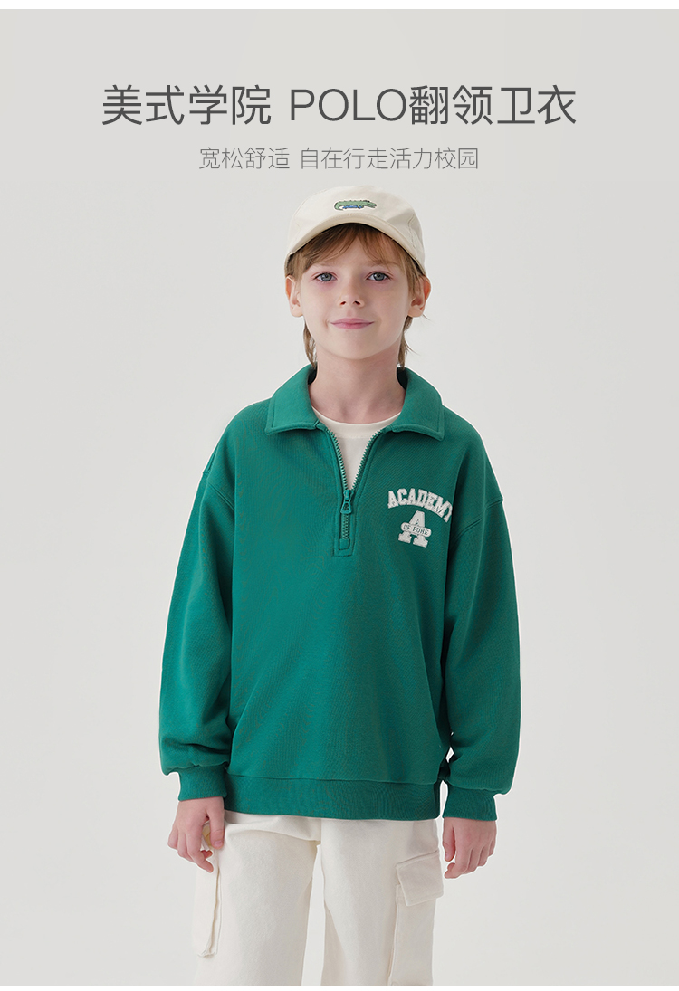 马克珍妮男童美式学院polo翻领卫衣儿童上衣2024年秋装新款241036