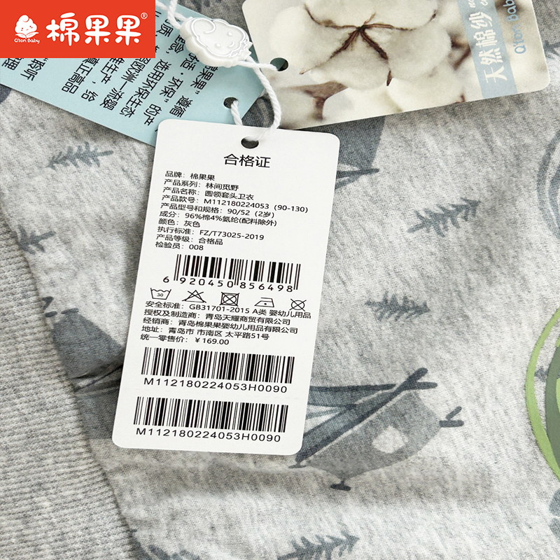 棉果果专柜同款春季新品男童纯棉圆领套头卫衣M112180224053