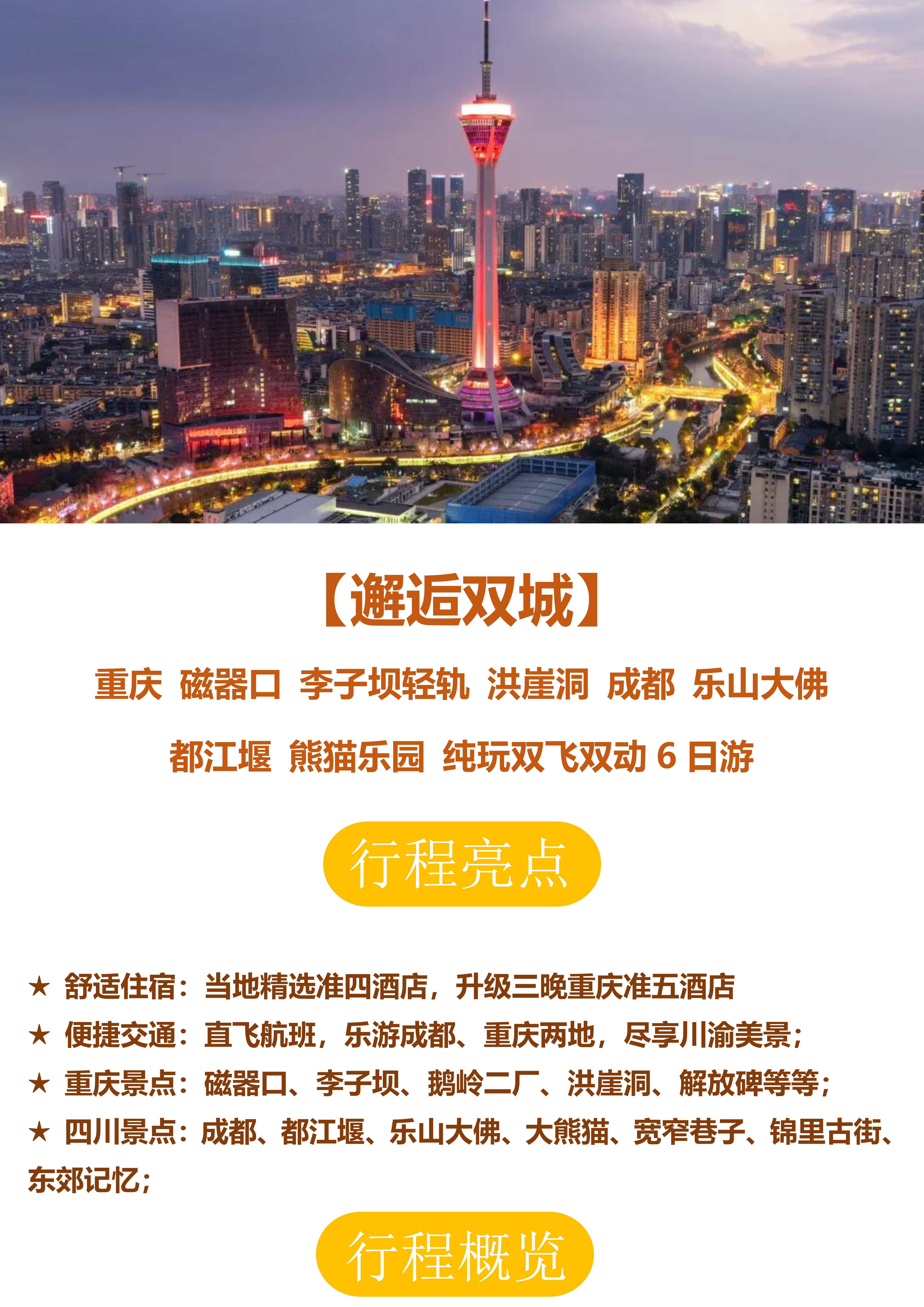 【邂逅双城】四川+重庆纯玩双飞双动6日游