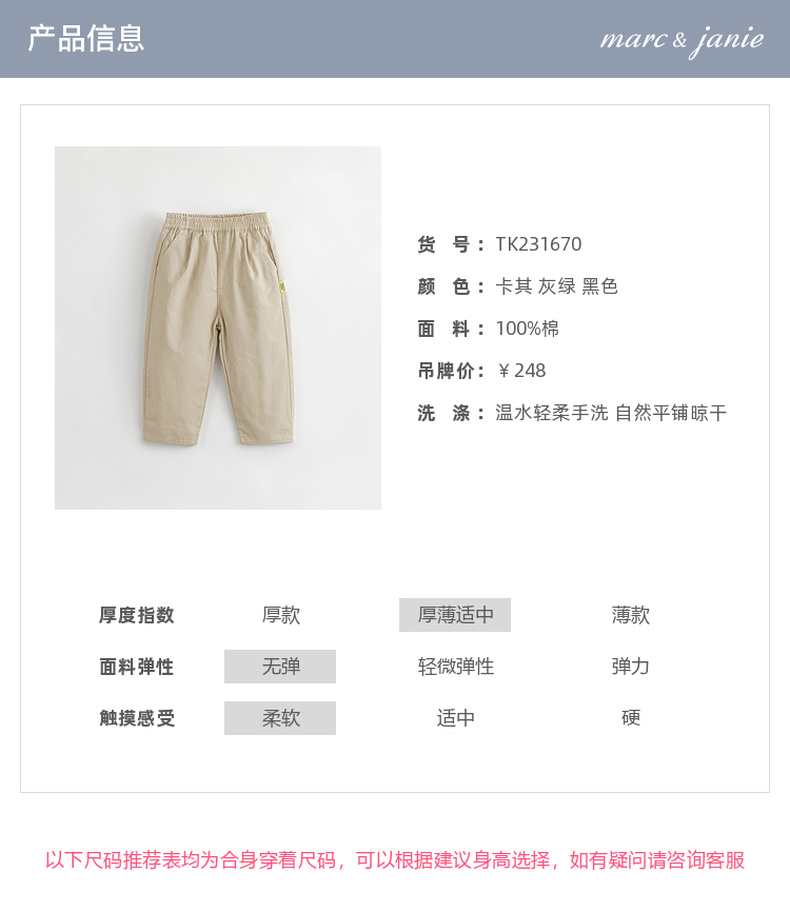 马克珍妮秋装新款 男童纯棉休闲裤萝卜裤 儿童裤子231670