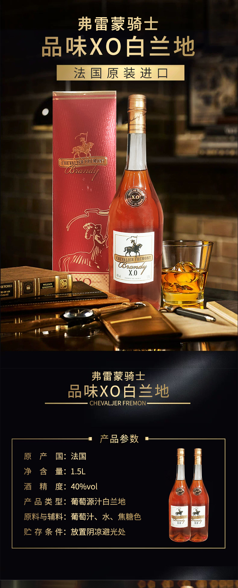 法国进口弗雷蒙骑士品味XO白兰地1.5L
