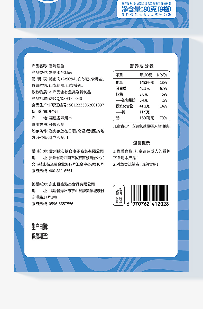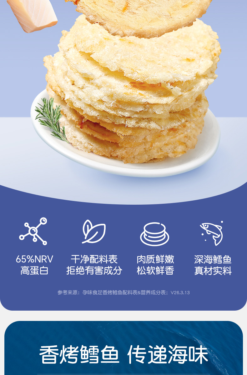 孕味食足烤鳕鱼片孕妇零食高蛋白营养休闲孕期食品小吃海鲜烤鱼片80g
