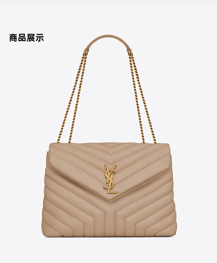 SAINT LAURENT 圣罗兰 女士LOULOU中号V形绗缝皮革单肩包 卡其色 574946 DV727 2721