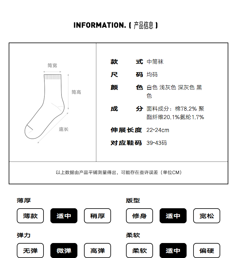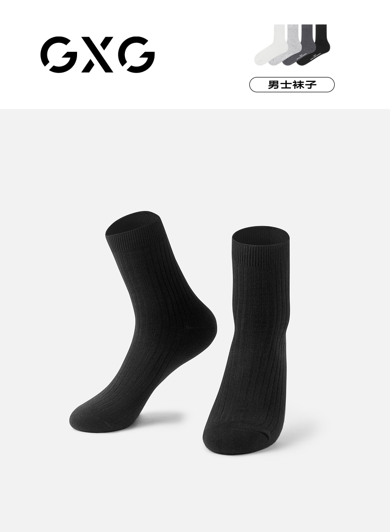 GXG男装 【单双装】GXG男士精梳棉中筒袜夏季吸汗防臭基础款袜子男