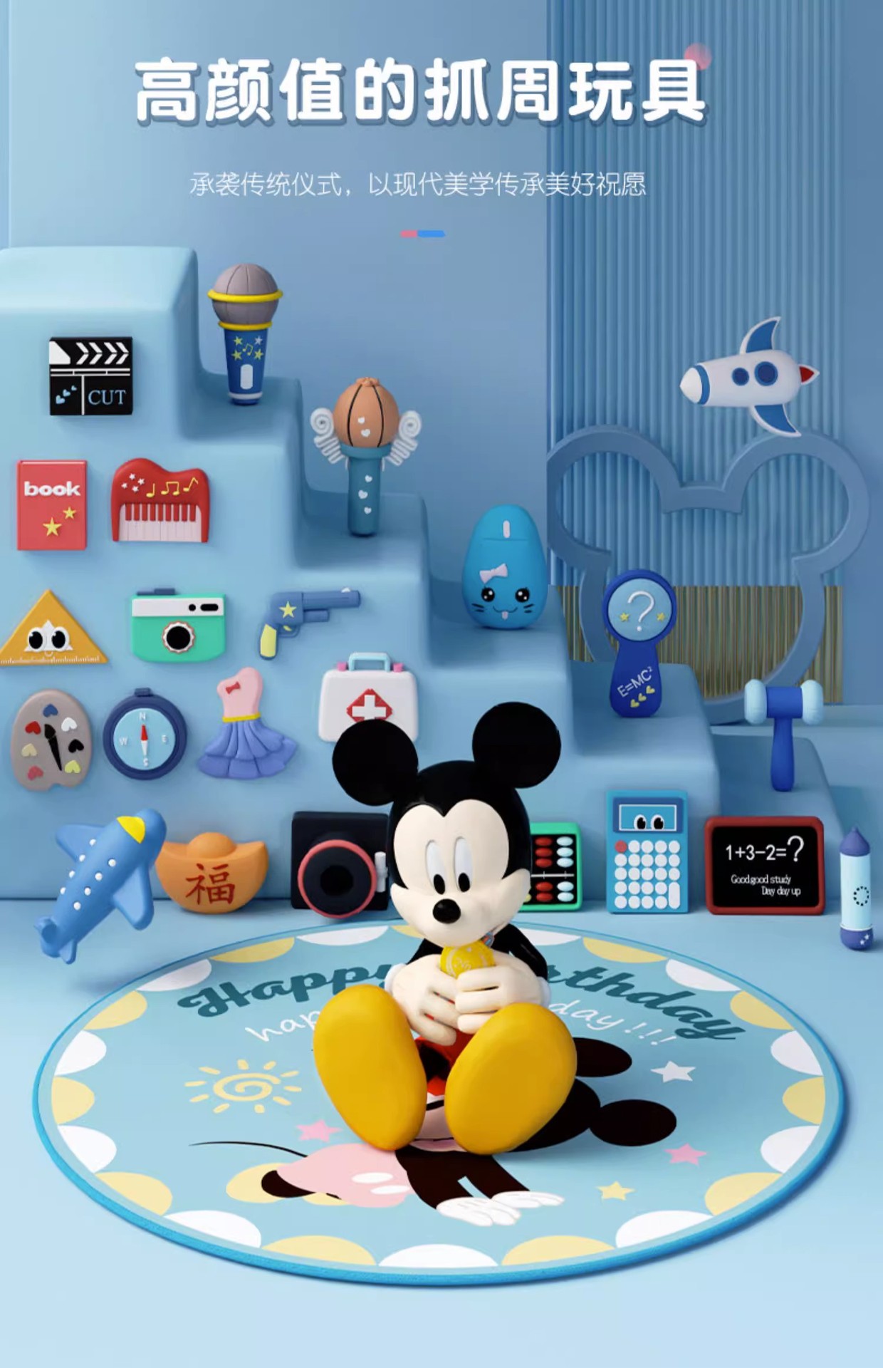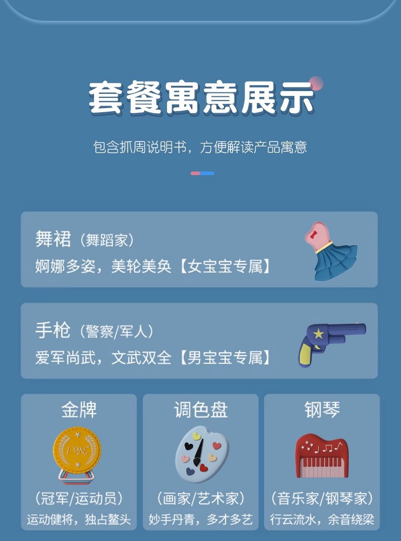 【新生礼】儿童周岁抓周用品宝宝抓周卡通道具摆件宝宝生日布置仪式留念礼物(特供)