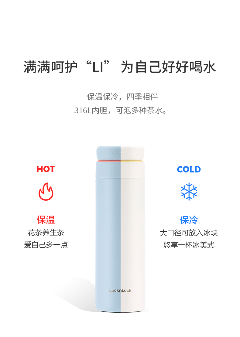 乐扣乐扣316不锈钢保温杯大容量高颜值茶杯男女秋冬上学水杯