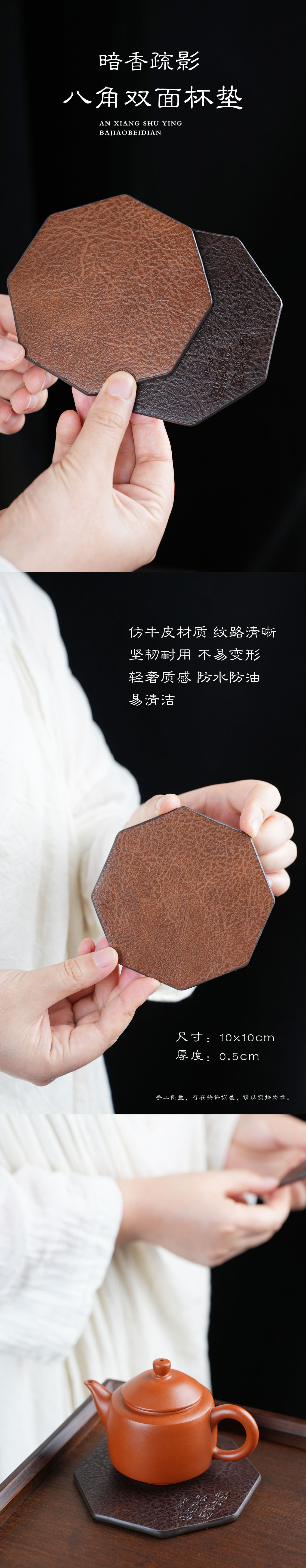 暗香疏影/八角杯垫2入/茶杯垫茶道新中式茶垫隔热垫餐桌家用西餐垫防水防油