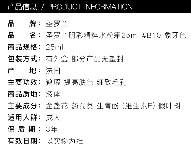 圣罗兰明彩精萃粉霜25ml #B10 象牙色 遮瑕美肌 控油定妆