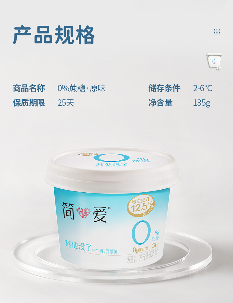 【预售】简爱 0%蔗糖酸奶原味135g*3组12杯