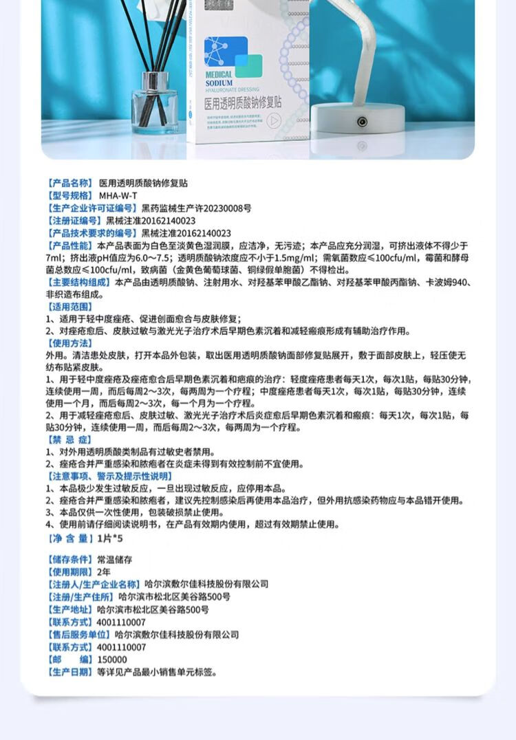 敷尔佳 医用透明质酸纳修复贴白面膜(5片装) 械字号
