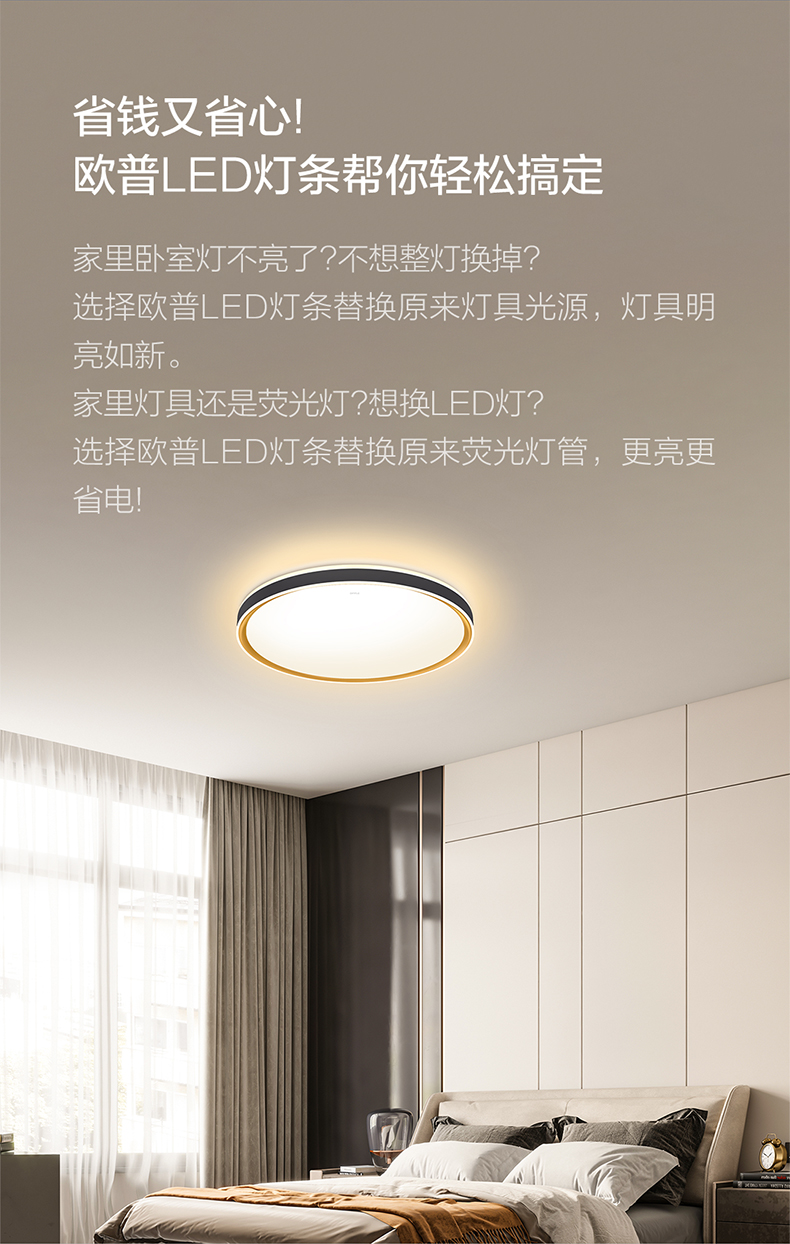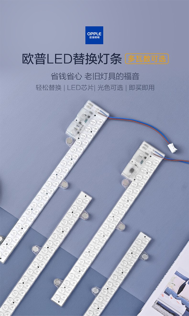 欧普(OPPLE)吸顶灯客厅灯改造灯板长条灯泡灯管灯条灯芯灯盘替换灯条