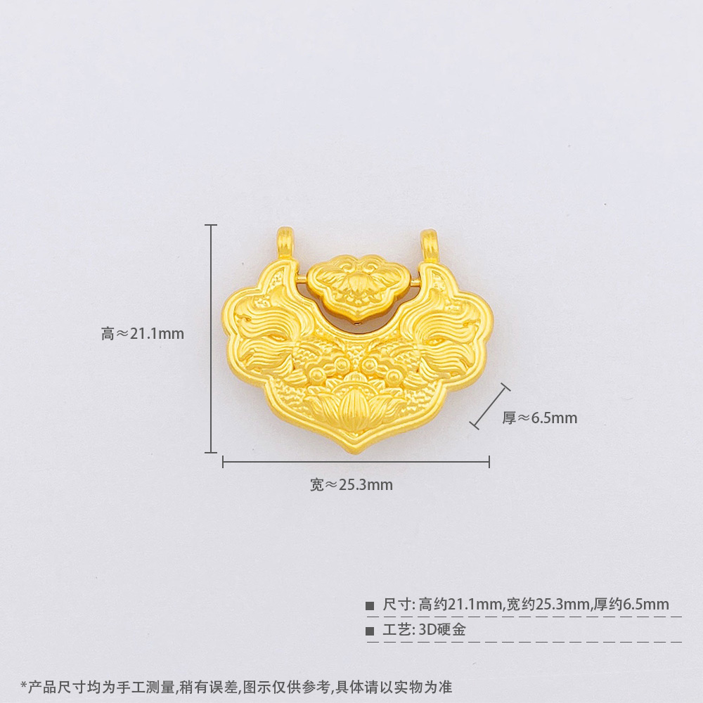 【限时克减150元】足金 【精品】3D硬金仿古法双面连年有余双鱼锦鲤锁包莲花平安如意锁包吊坠(AU3DDZ00005-1)(预售产品下单后不退款不退货不换货不补差价)